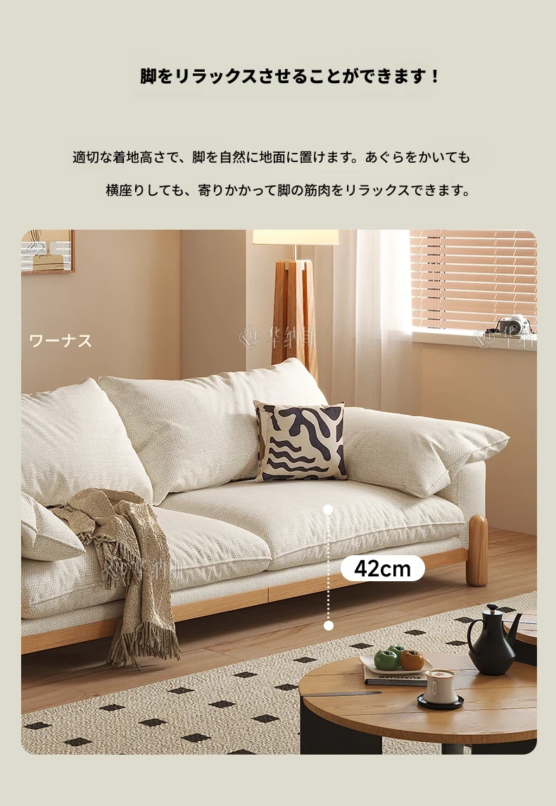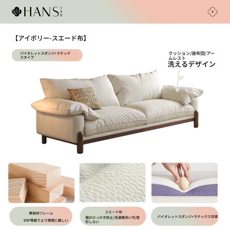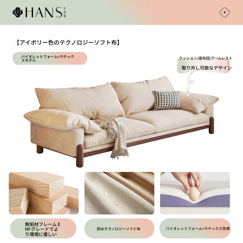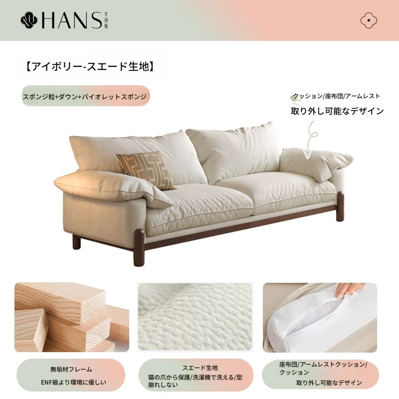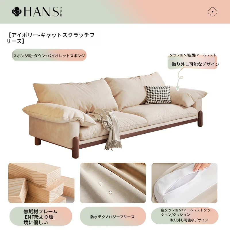 【重厚アップグレード】フラッグシップ版【雲粒子システム座包】【アイボリー-キャットクロー起毛布+ホワイトウッドフレーム】