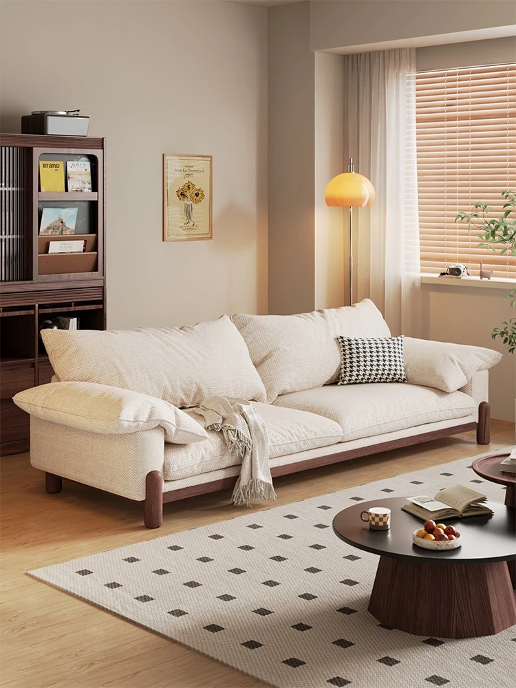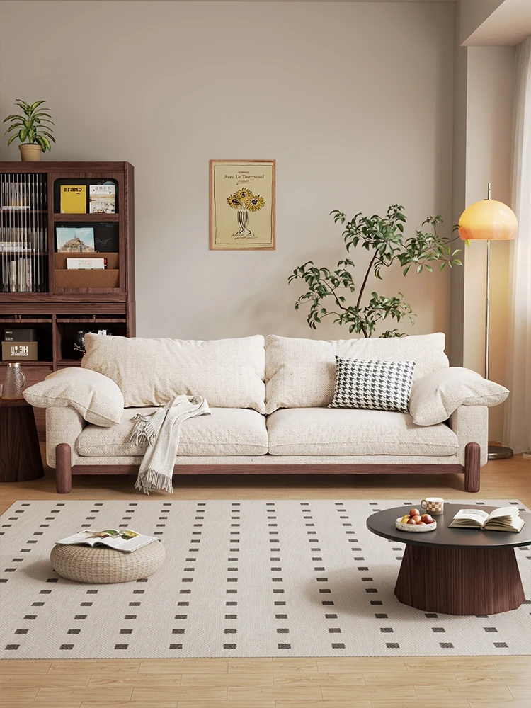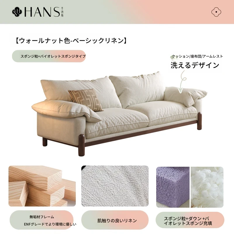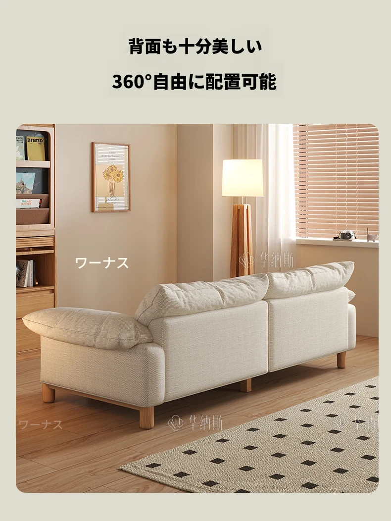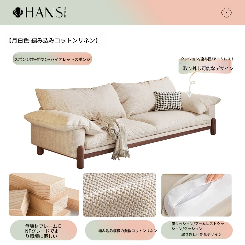 【重厚アップグレード】フラッグシップ版【雲粒子システム座包】【ウォームホワイト-天然夏麻布+ホワイトウッドフレーム】
