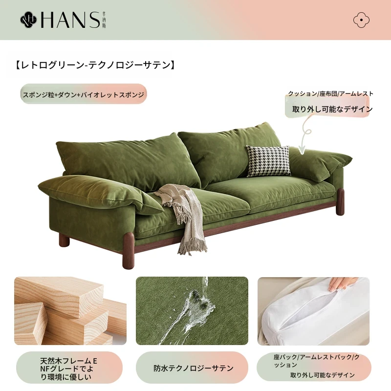 【重厚アップグレード】フラッグシップ版【雲粒子システム座包】【レトログリーン-テクノロジー起毛布+ホワイトウッドフレーム】