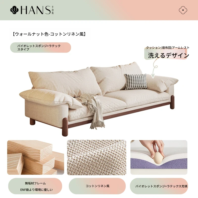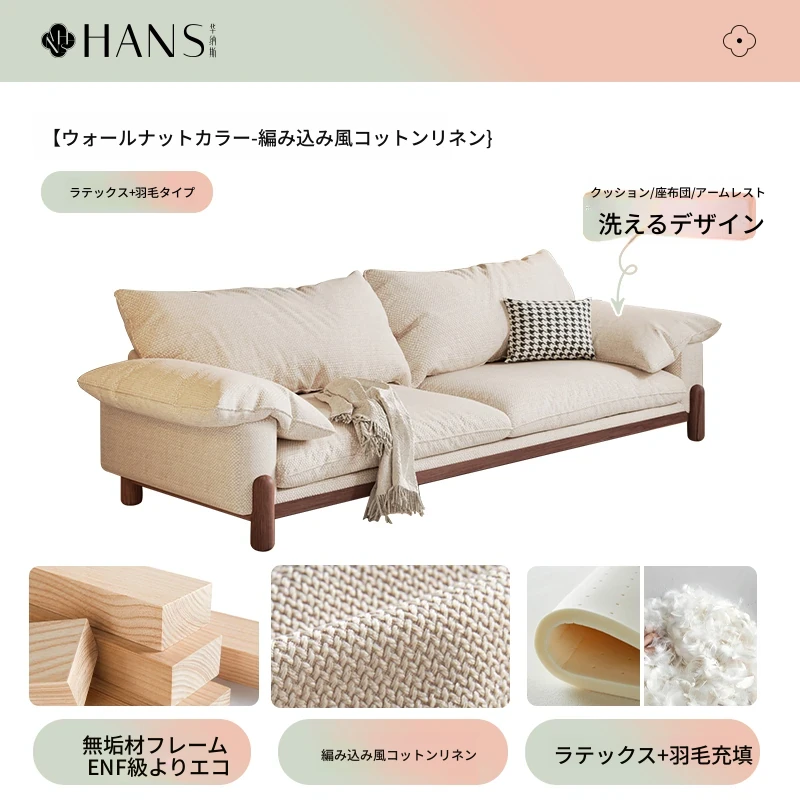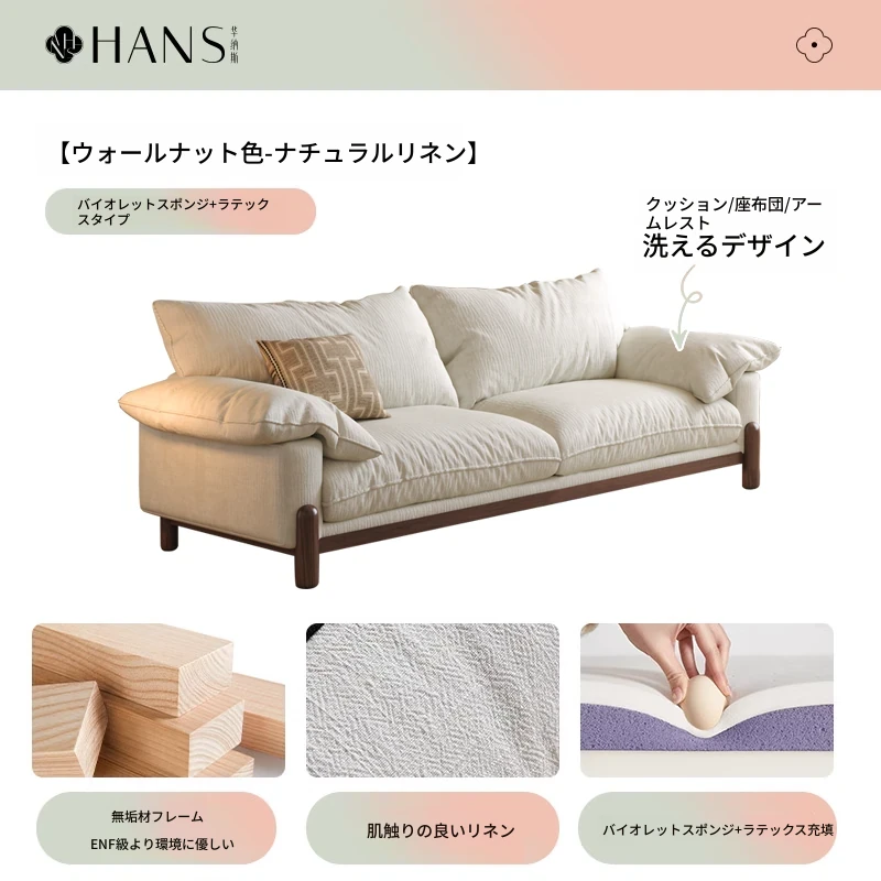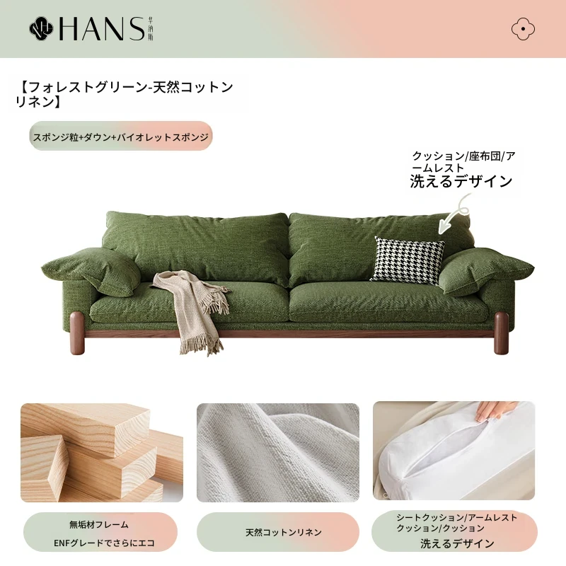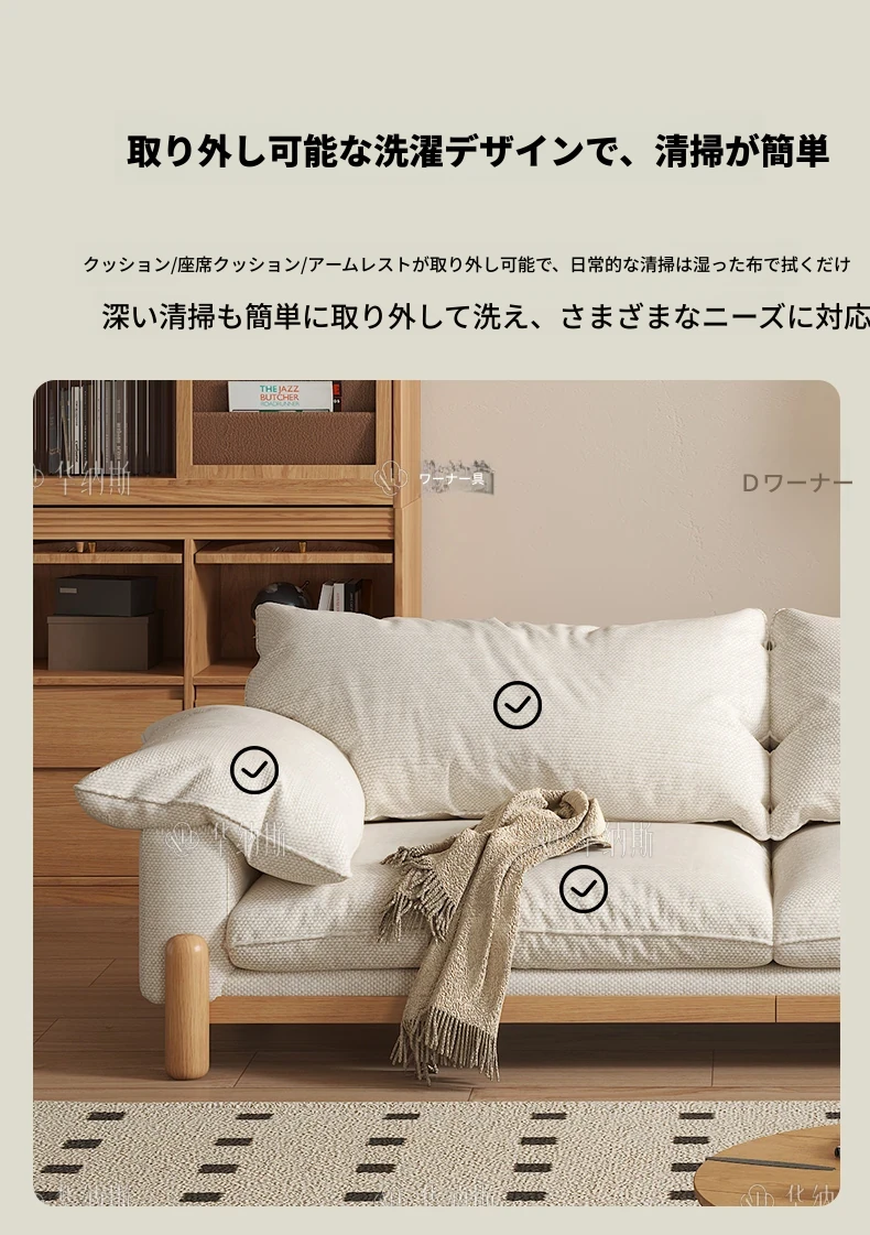 ワーナスブリソファ 日本式無垢材リビング 2025年新作 洗える中古コットンリネン 大きな耳付きデザインで快適さを追求!おしゃれで機能的なインテリアをあなたの部屋に!