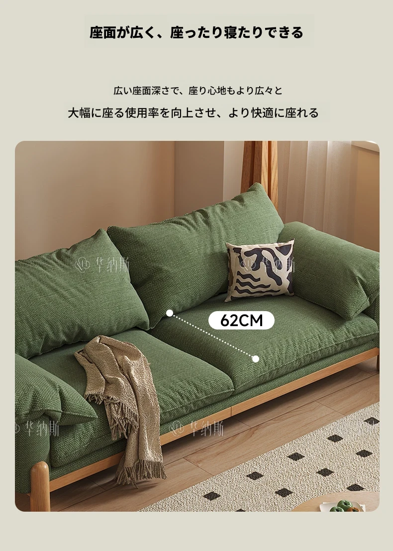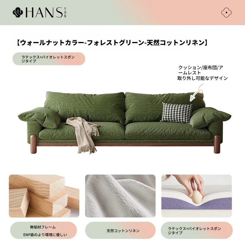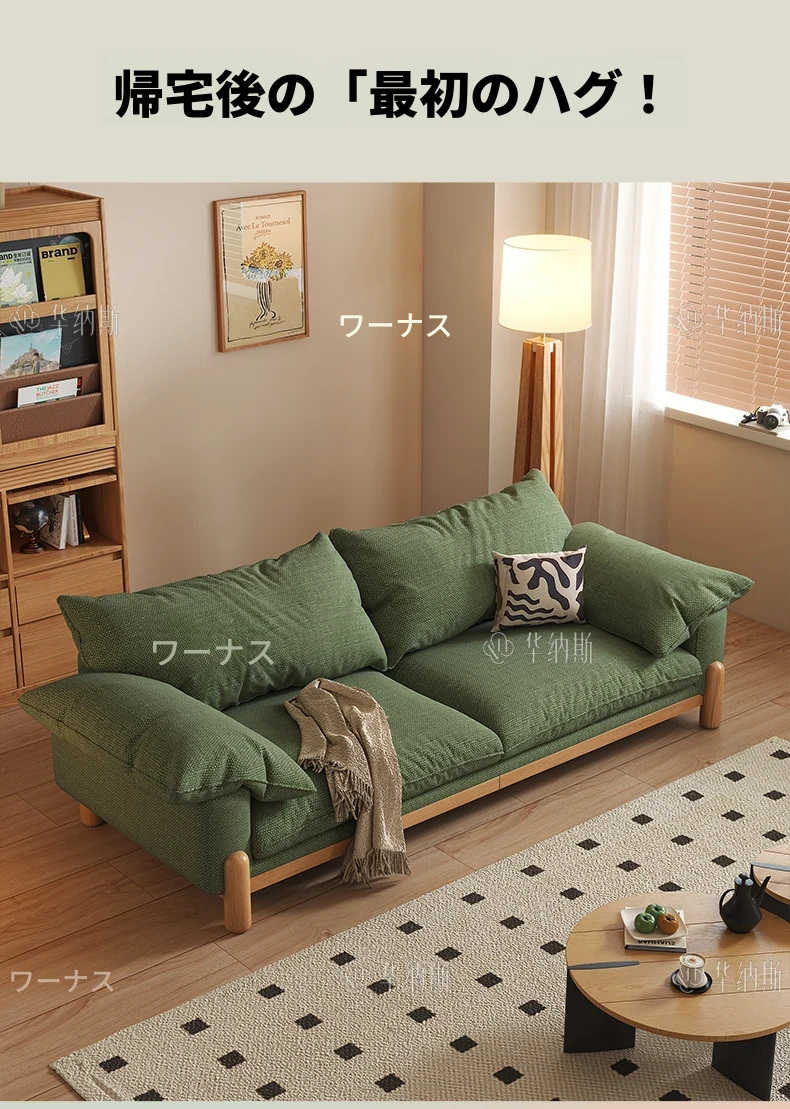 【重厚アップグレード】フラッグシップ版【雲粒子システム座包】【フォレストグリーン-天然コットンリネン+ホワイトウッドフレーム】