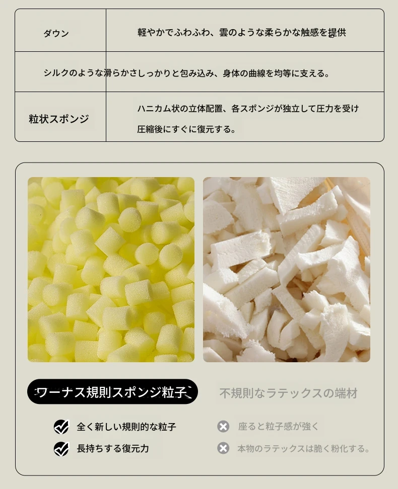 【新しくアップグレード】豪華版-Q弾性座感【アイボリー-サンドブラスト布】ラテックス+バイオレットスポンジ+ホワイトウッドフレーム