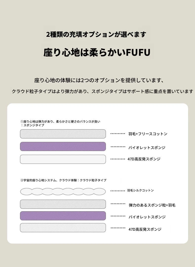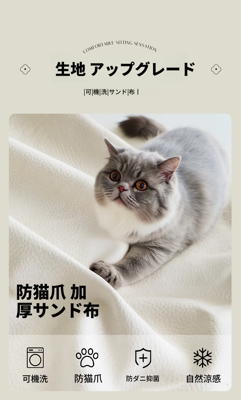【新しくアップグレード】豪華版-Q弾性座感【アイボリー-キャットクロー起毛布】ラテックス+バイオレットスポンジ+ホワイトウッドフレーム