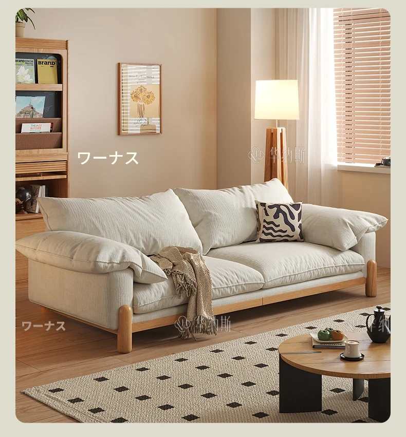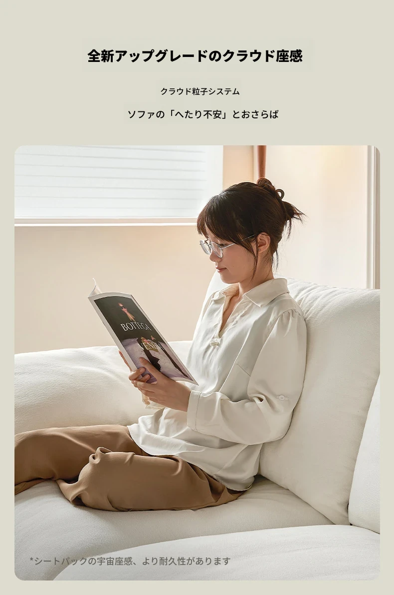【重厚アップグレード】フラッグシップ版【雲粒子システム座包】【アイボリー-サンドブラスト布+ホワイトウッドフレーム】