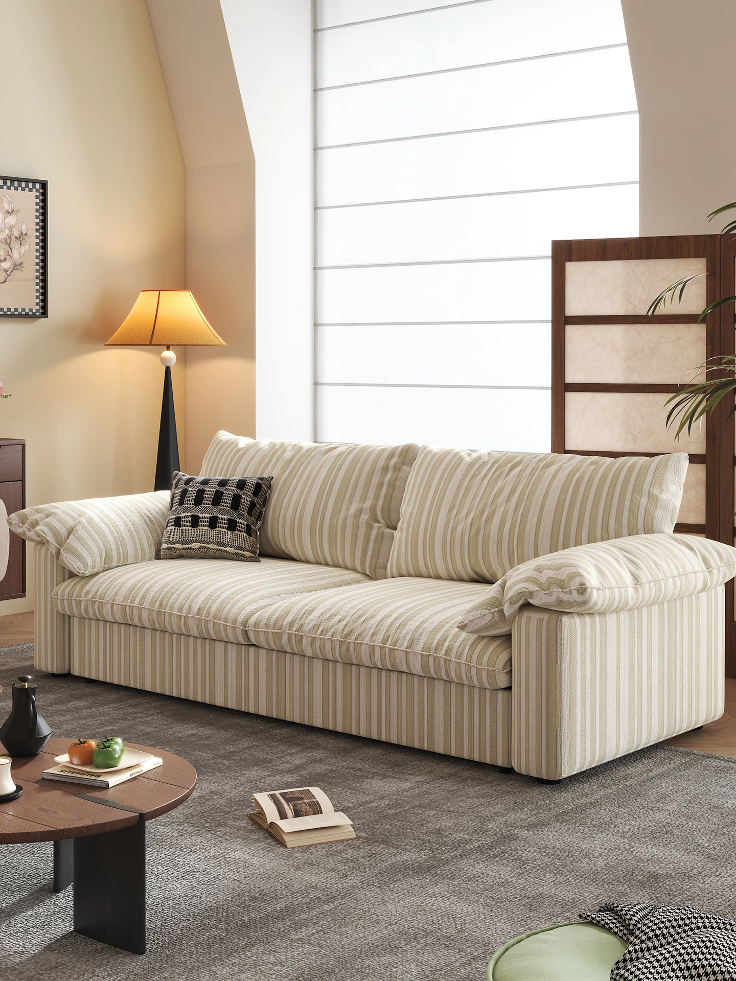 【ウォームサンドホワイトストライプ-サークルファブリックリネン】アップグレードメモリーフォーム