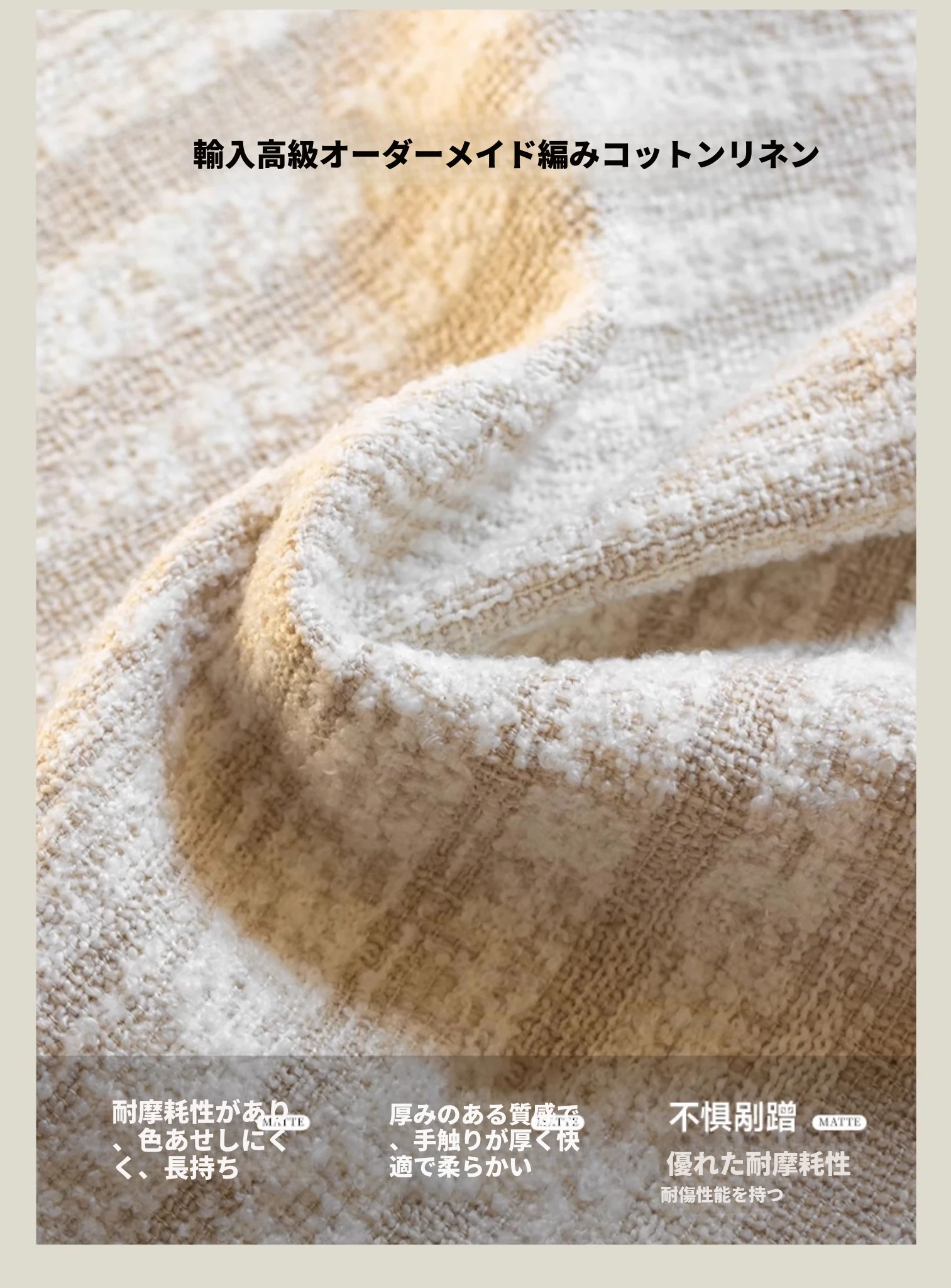【オートミールカラー-チェック柄シェニール】アップグレードメモリーフォーム