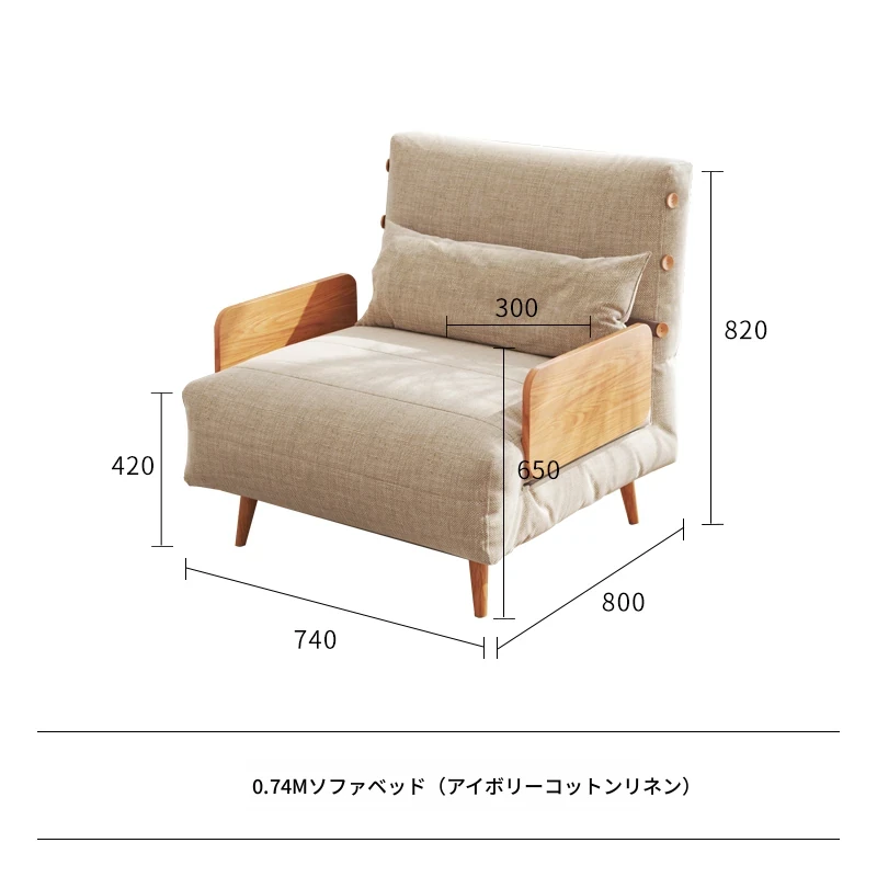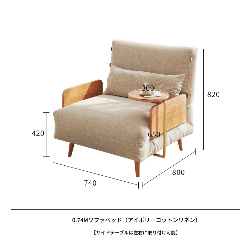 0.74m【ナチュラルウッド色フレーム+アイボリーのコットンリネン】