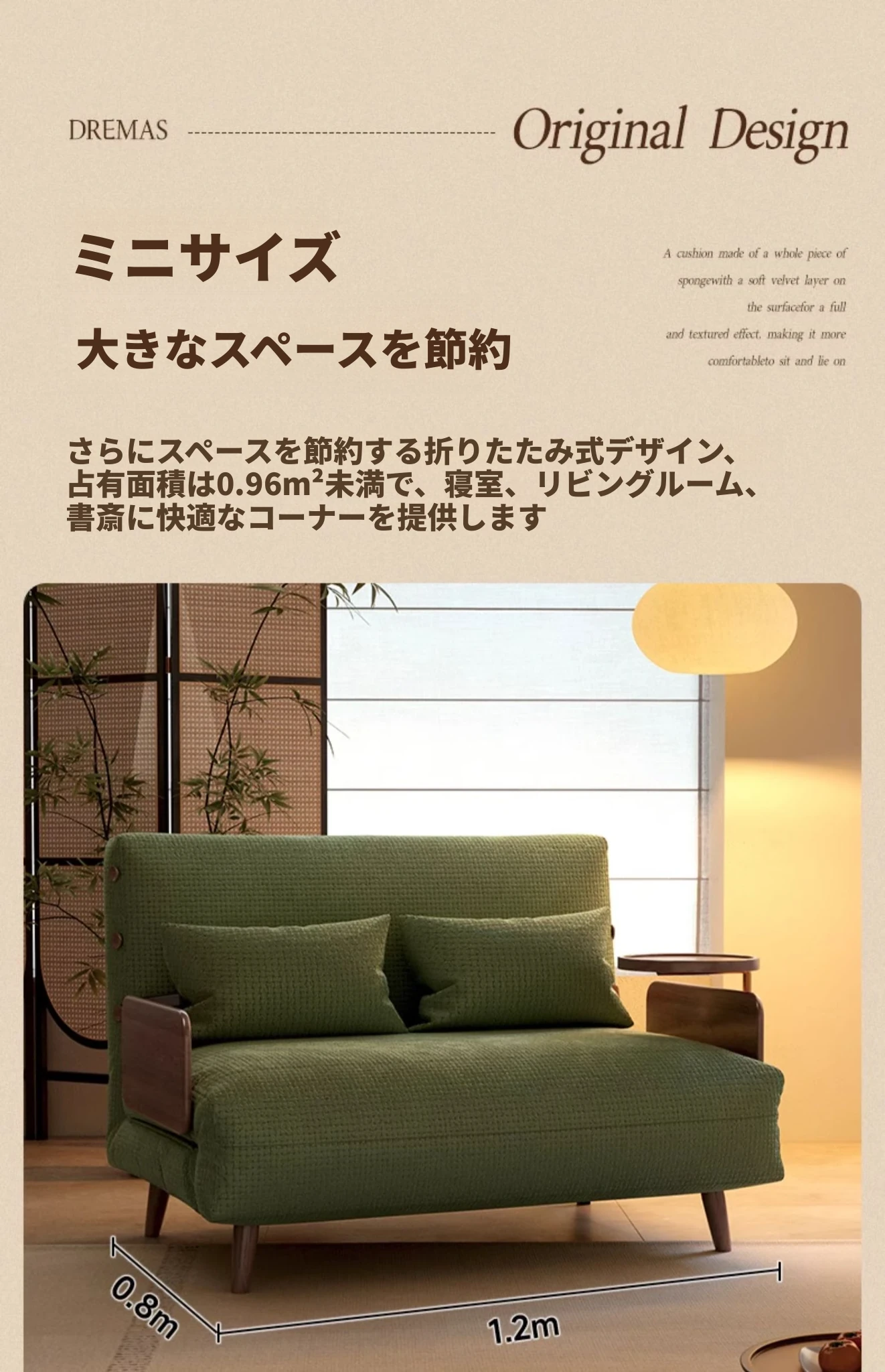 ワーナス和風ソファベッド 折りたたみ式 1.2m リビング用 シングル 多機能 ストレッチソファベッド 小型住宅に最適!快適な休息空間を提供します。