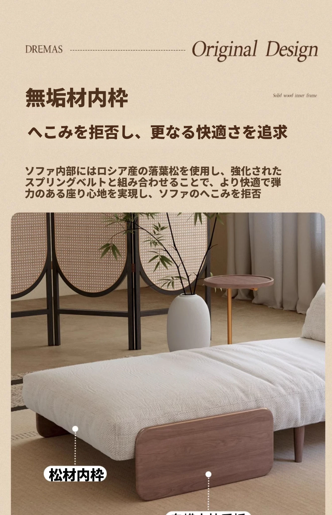 0.9m【ナチュラルウッド色フレーム+アイボリーのコットンリネン】
