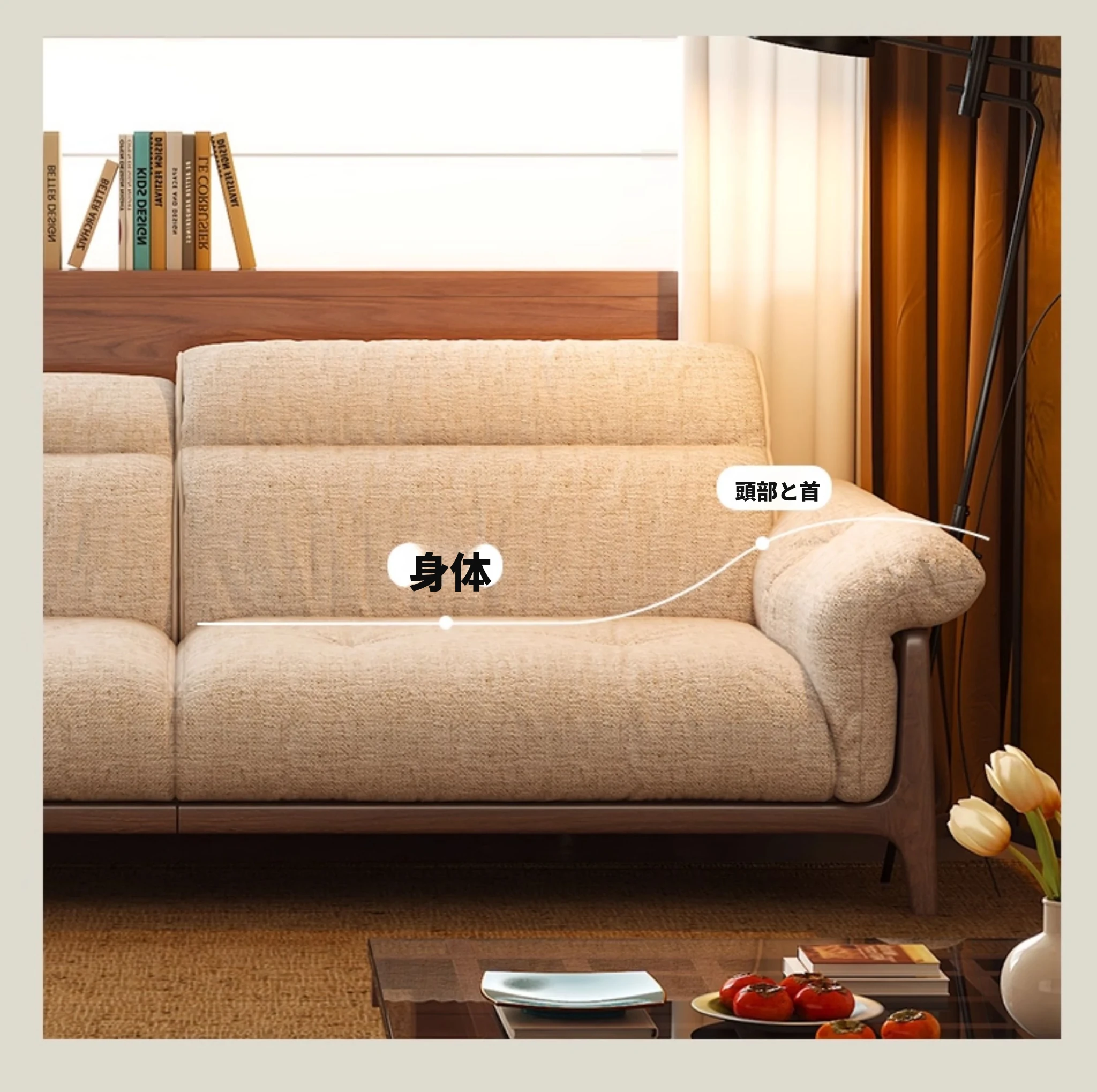 ワーナス清川ソファー 中古風の無垢材背もたれ 調整可能 直立型 洗えるカバー付き リビングにぴったりの布製 2025年新作!快適な座り心地で、スタイリッシュな空間を演出します。