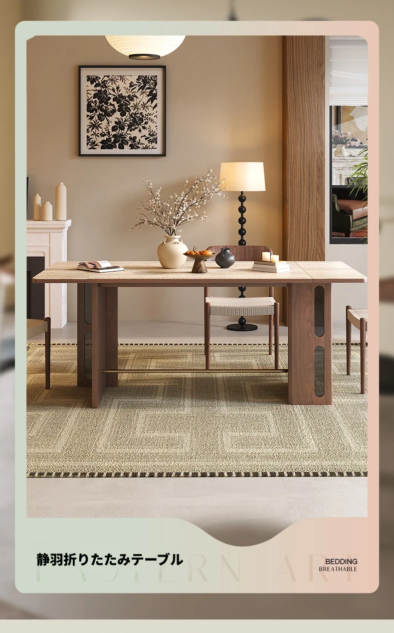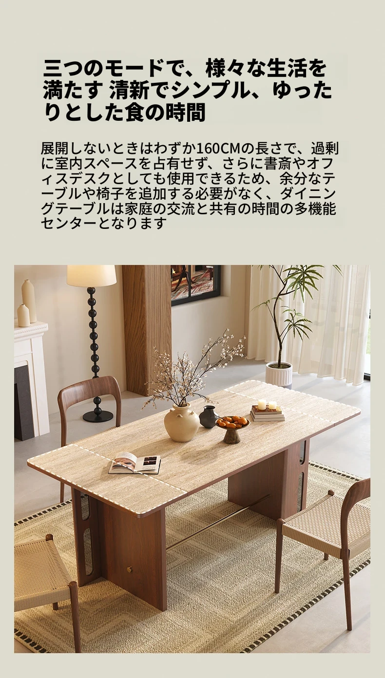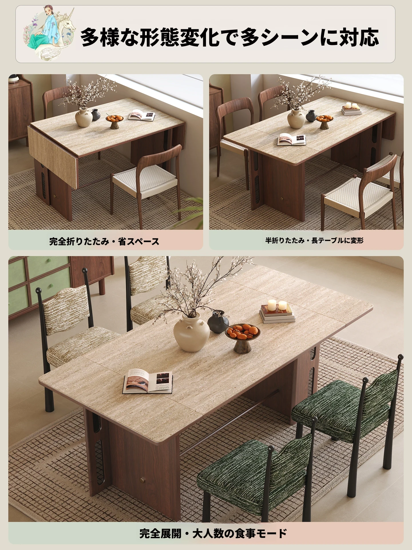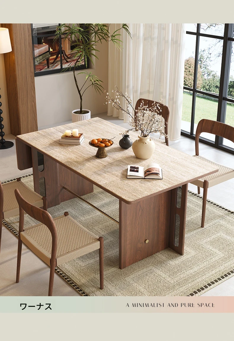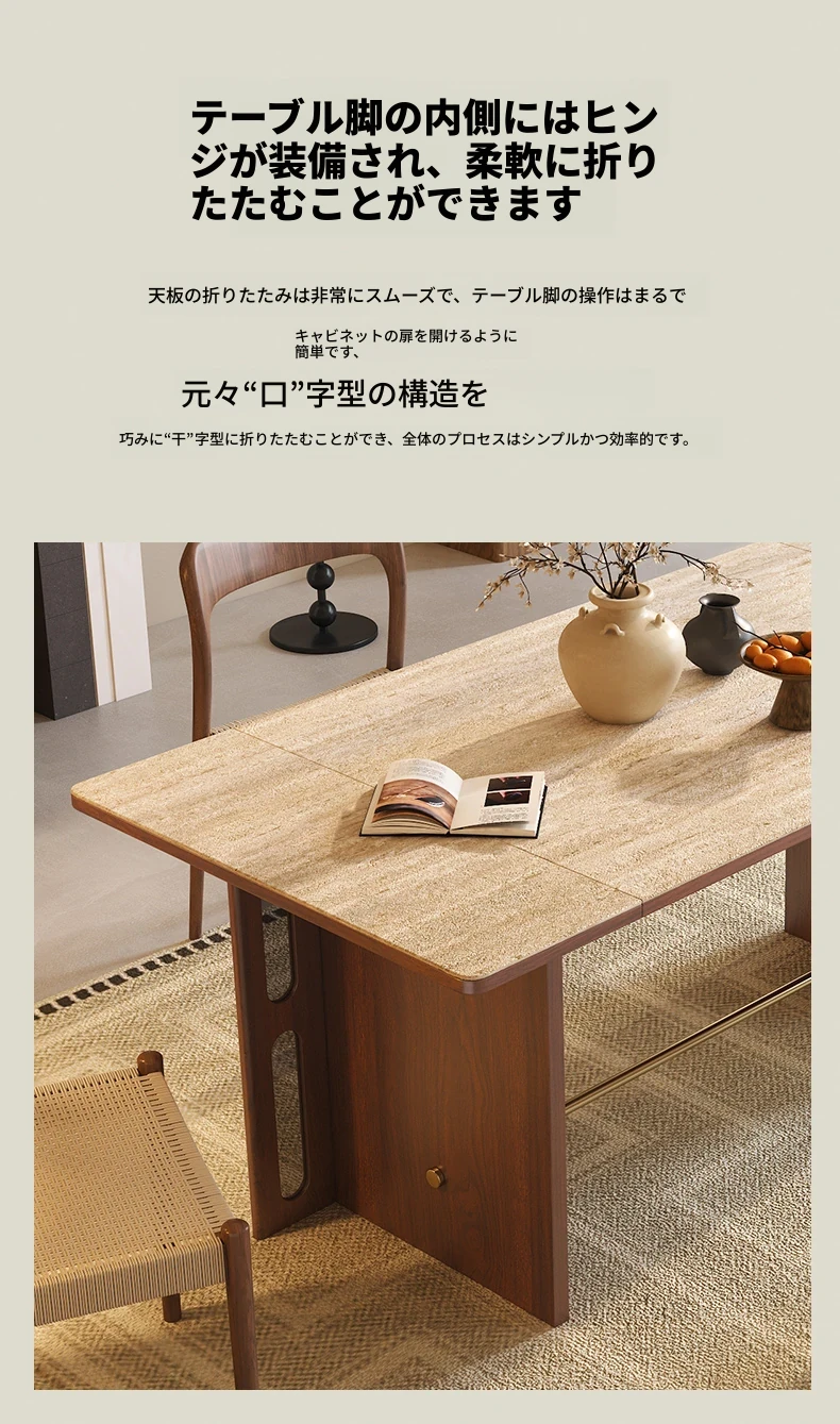 ワーナス静羽折りたたみ岩板ダイニングテーブル - 中古風2025新作!小型住宅に最適な長方形の天然木テーブルで、スタイリッシュなリビングを演出。限られたスペースを有効活用し、心地よい食事のひとときをお楽しみください!
