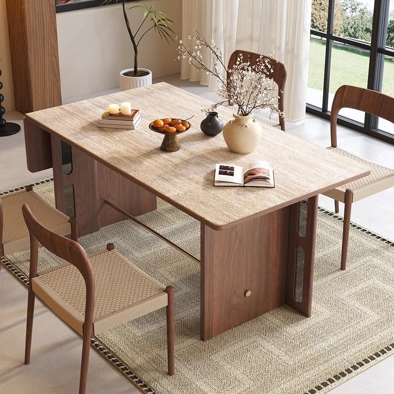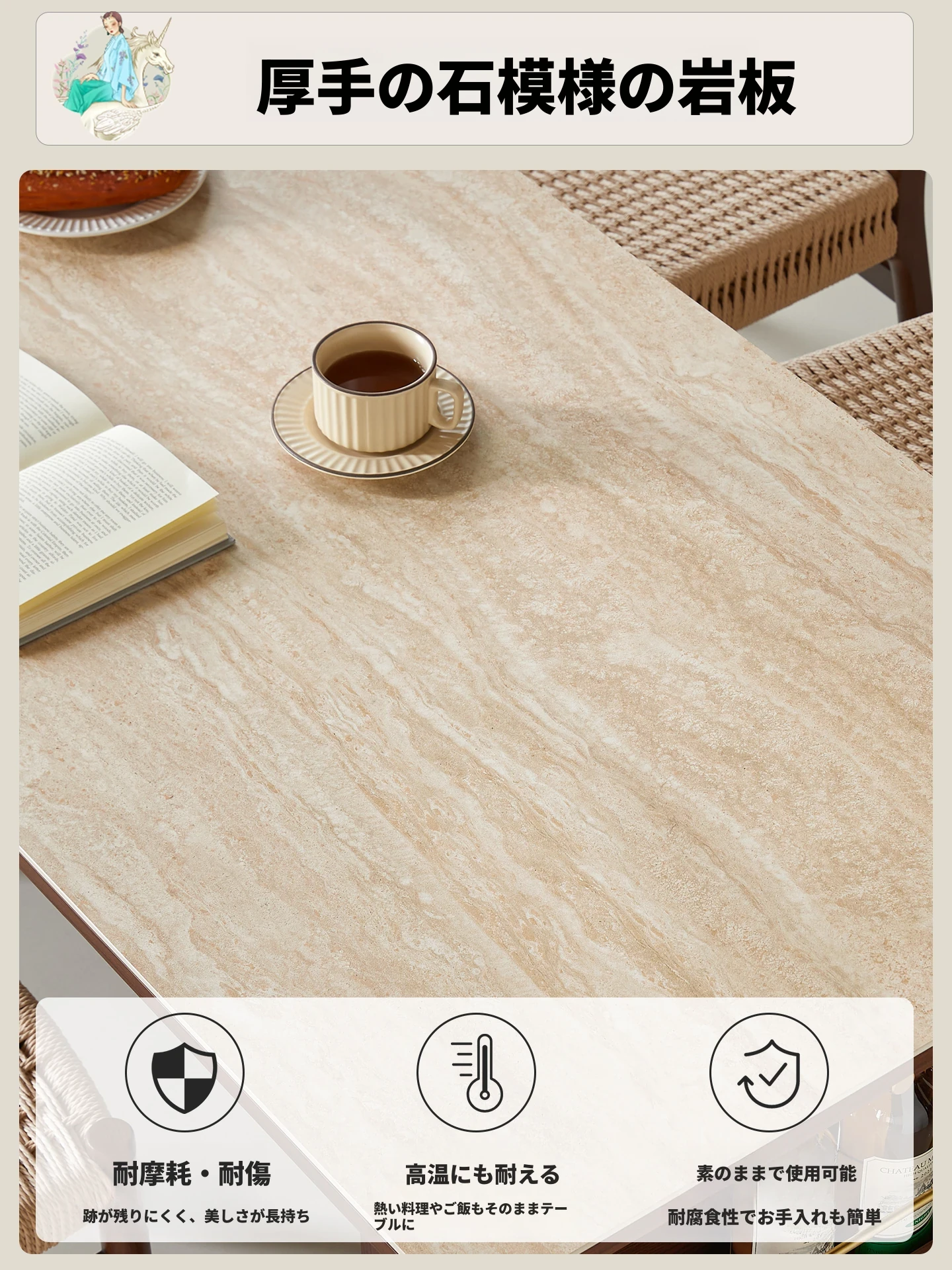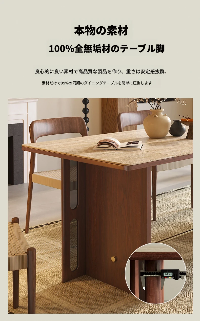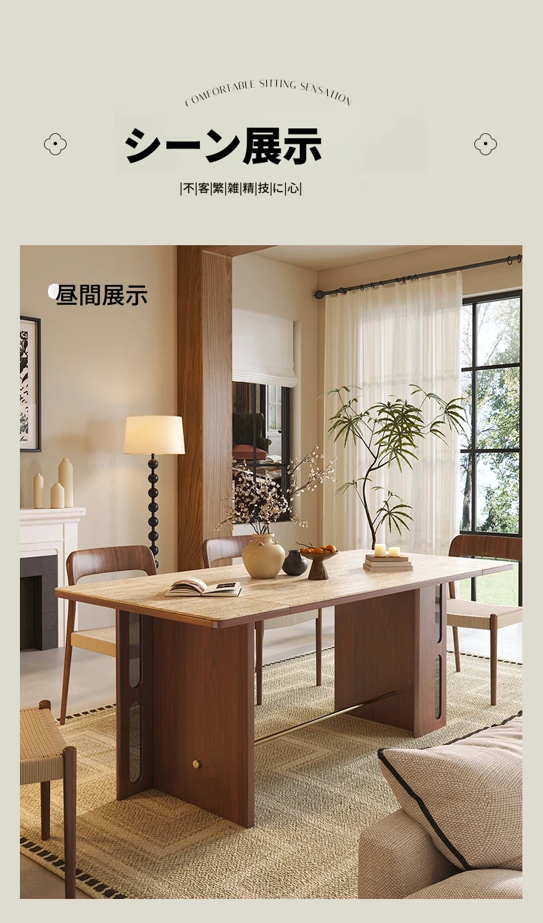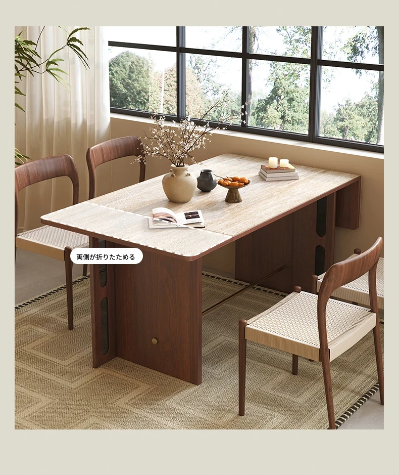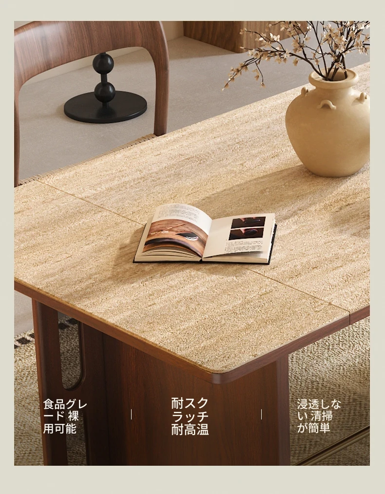 ワーナス静羽折りたたみ岩板ダイニングテーブル - 中古風2025新作!小型住宅に最適な長方形の天然木テーブルで、スタイリッシュなリビングを演出。限られたスペースを有効活用し、心地よい食事のひとときをお楽しみください!