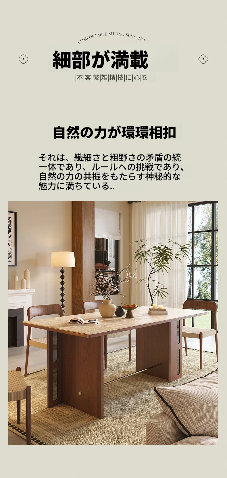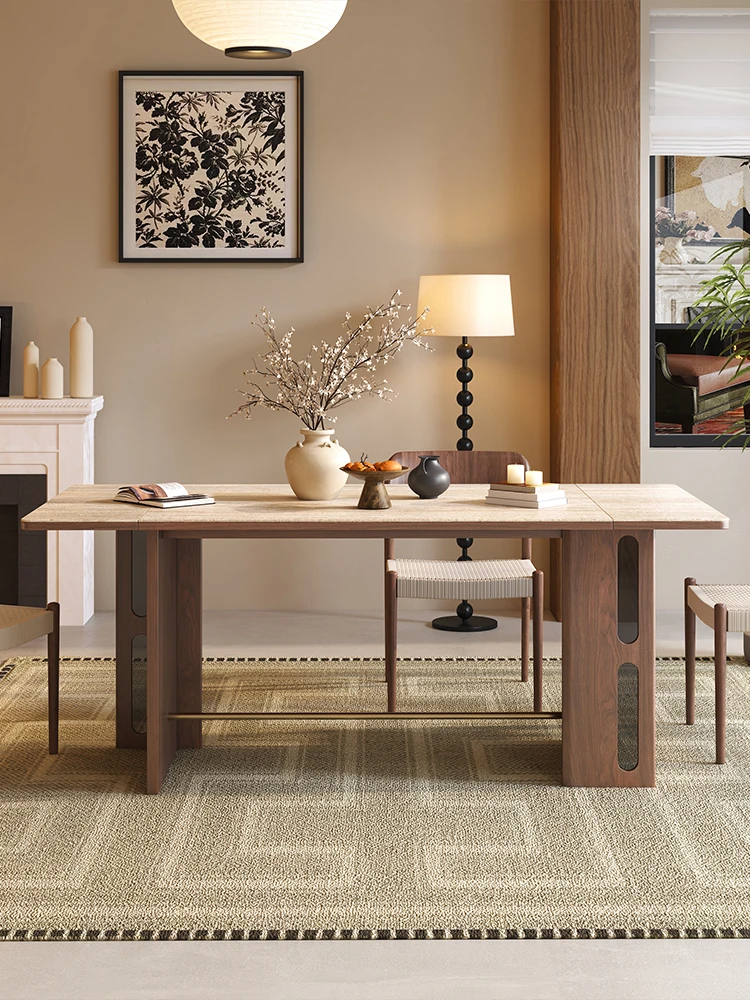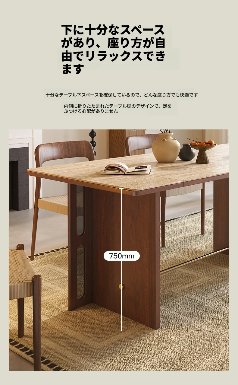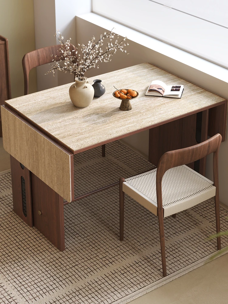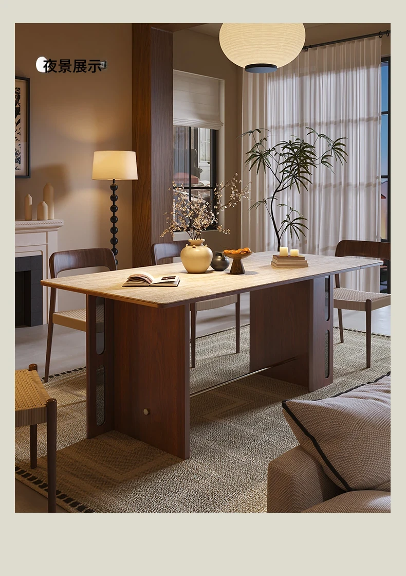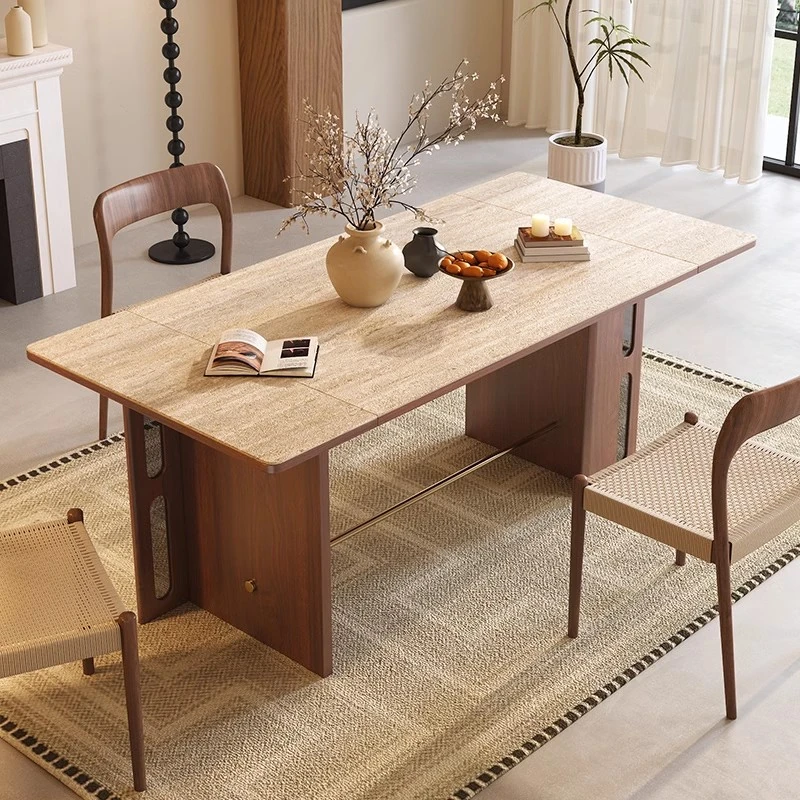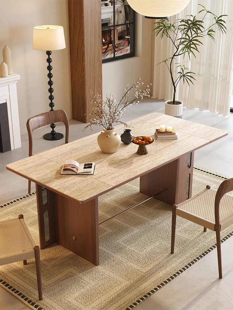 ワーナス静羽折りたたみ岩板ダイニングテーブル - 中古風2025新作!小型住宅に最適な長方形の天然木テーブルで、スタイリッシュなリビングを演出。限られたスペースを有効活用し、心地よい食事のひとときをお楽しみください!