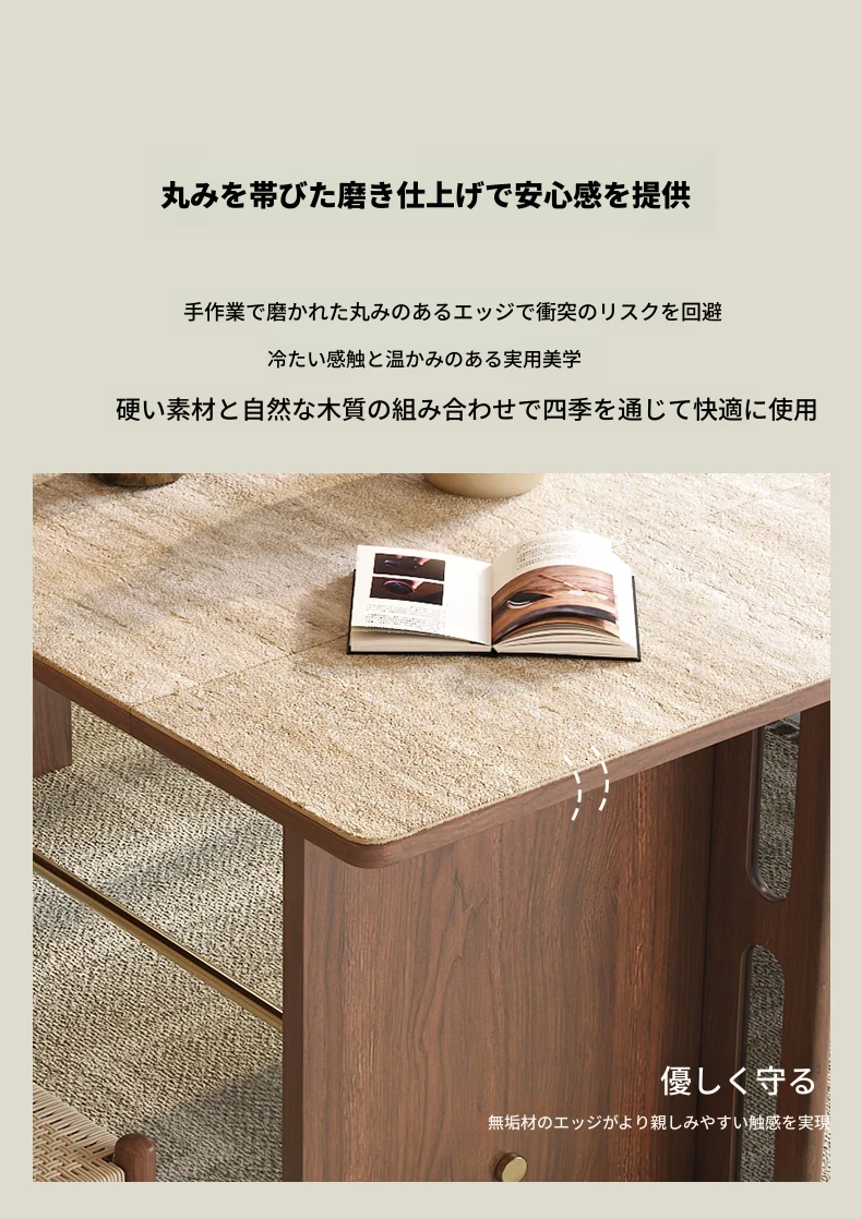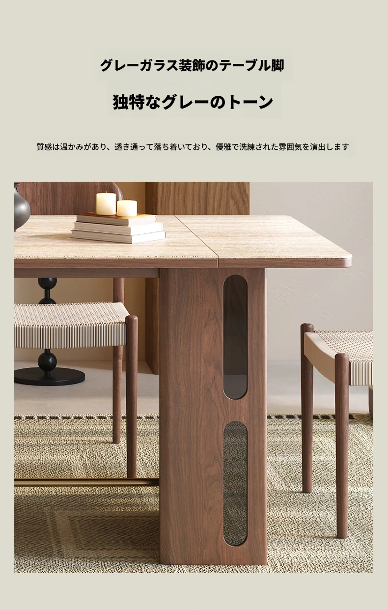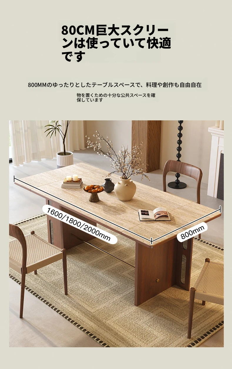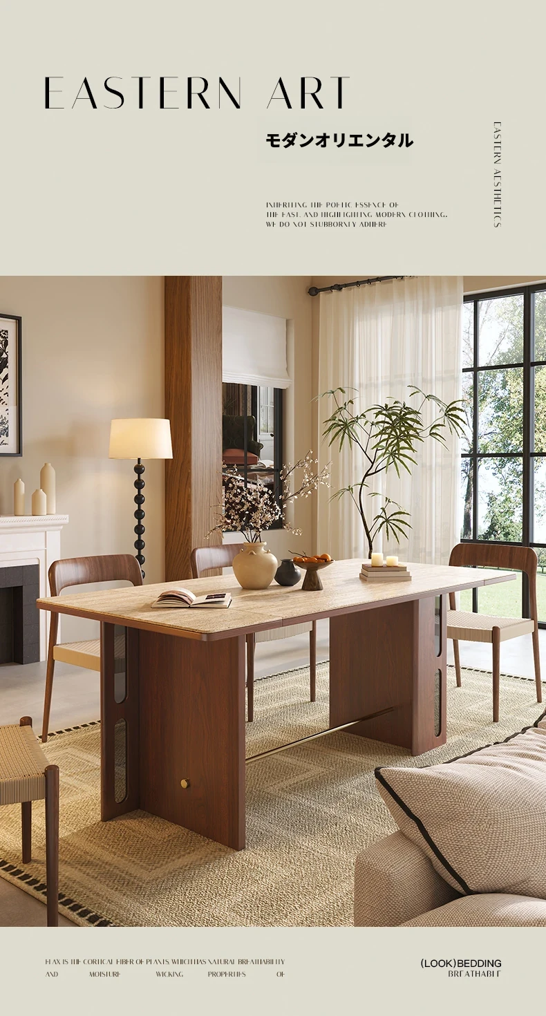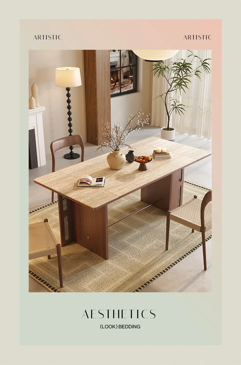 ワーナス静羽折りたたみ岩板ダイニングテーブル - 中古風2025新作!小型住宅に最適な長方形の天然木テーブルで、スタイリッシュなリビングを演出。限られたスペースを有効活用し、心地よい食事のひとときをお楽しみください!