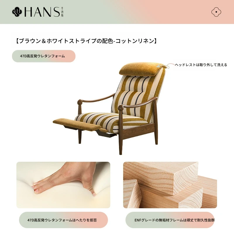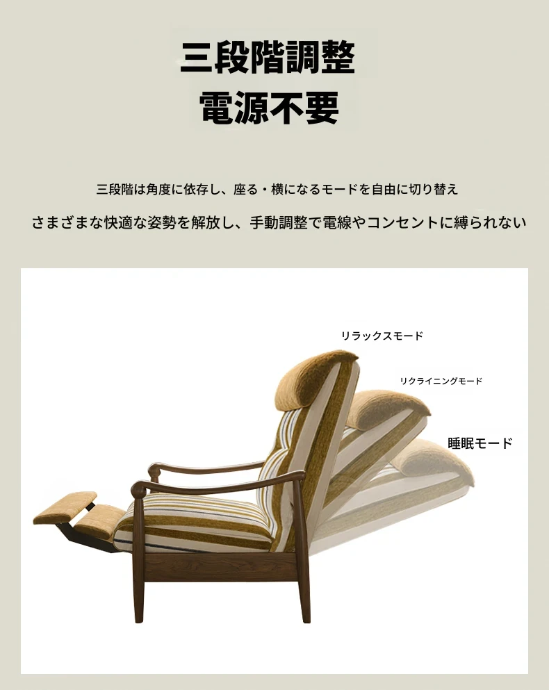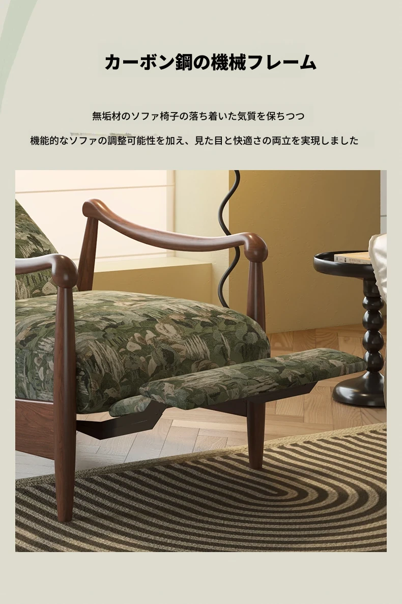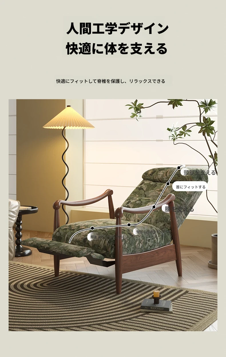 ワーナス レトロ 一人掛けソファ 機能性抜群!調節可能な背もたれ付き、天然木製のリラックスチェア。デザイナーによるスタイリッシュで快適なレイジーソファ。あなたのリビングにぴったり!