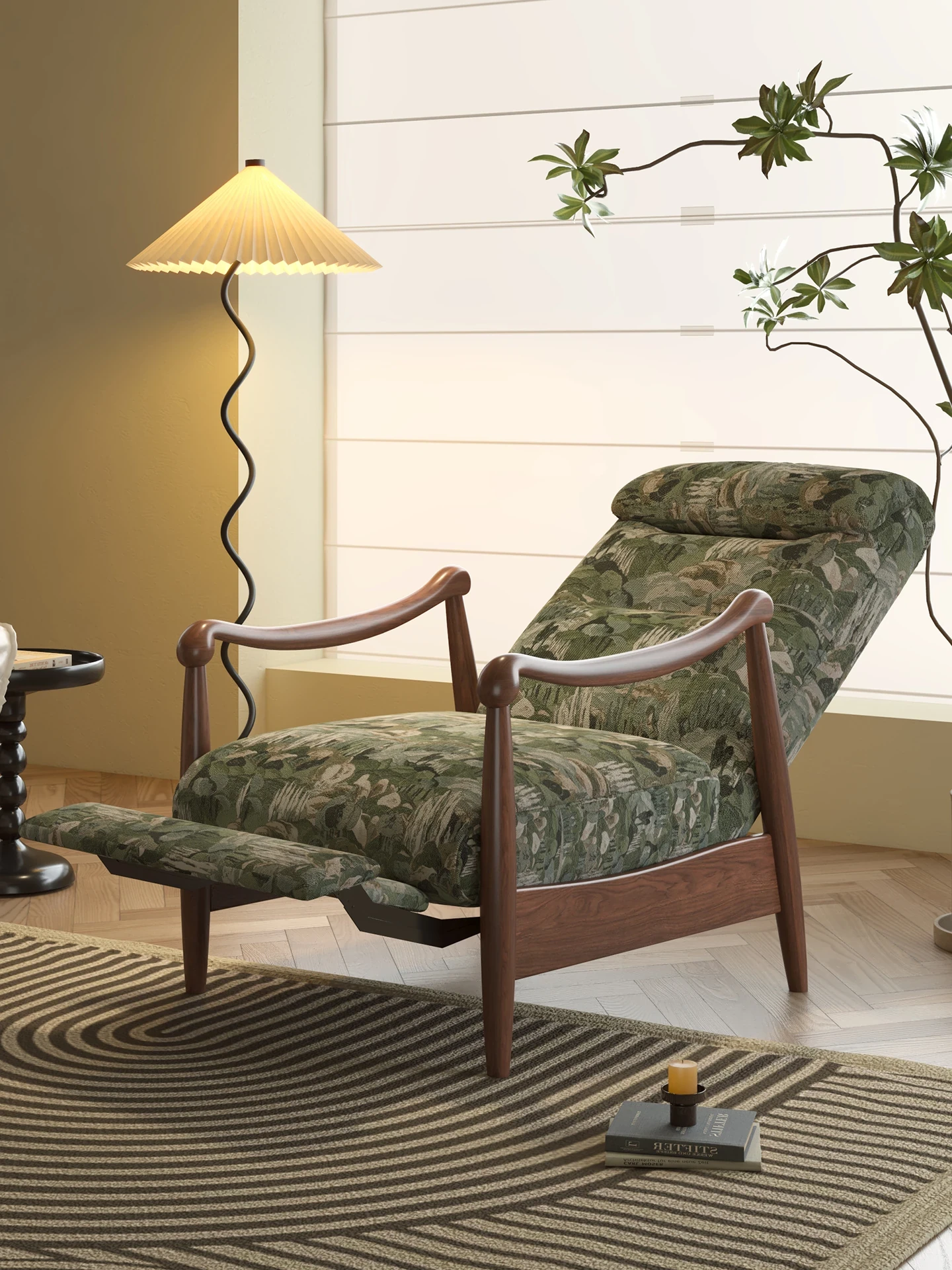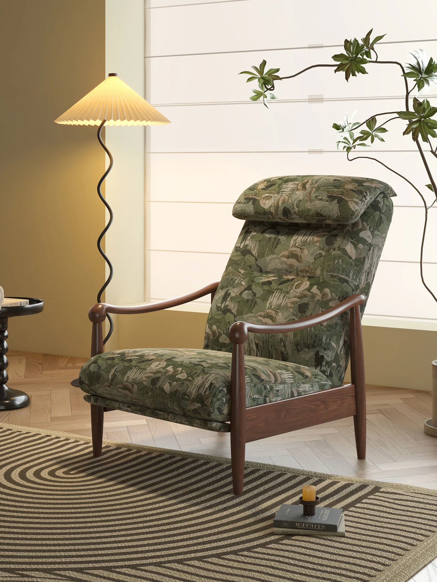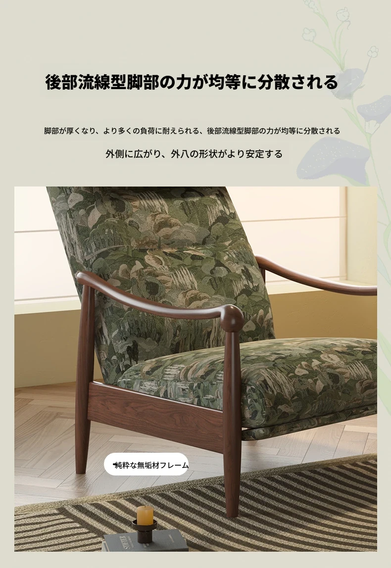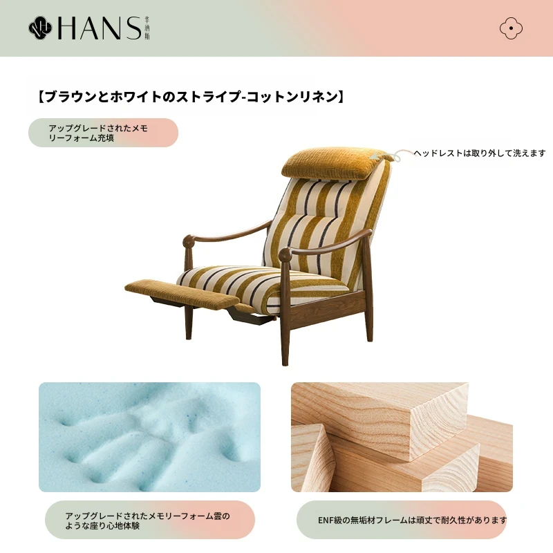 ワーナス レトロ 一人掛けソファ 機能性抜群!調節可能な背もたれ付き、天然木製のリラックスチェア。デザイナーによるスタイリッシュで快適なレイジーソファ。あなたのリビングにぴったり!