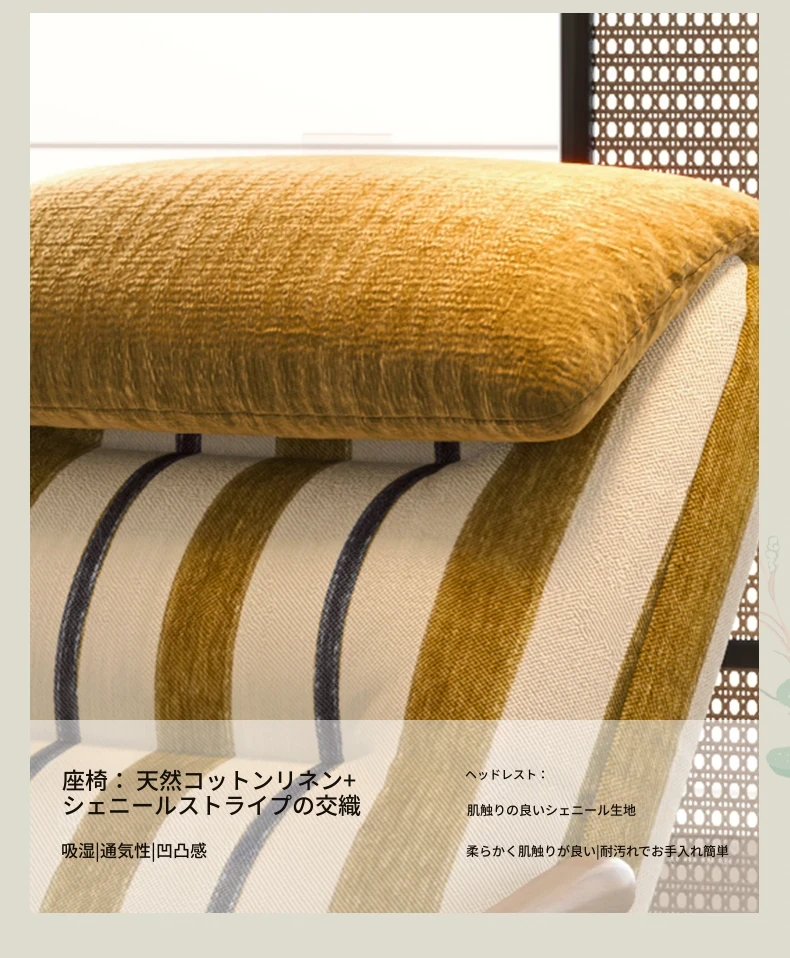【輸入北米ホワイトアッシュソファチェア】空山グリーン-ストライプバイカラー-コットンリネンアップグレードヘッドレスト取り外し可能