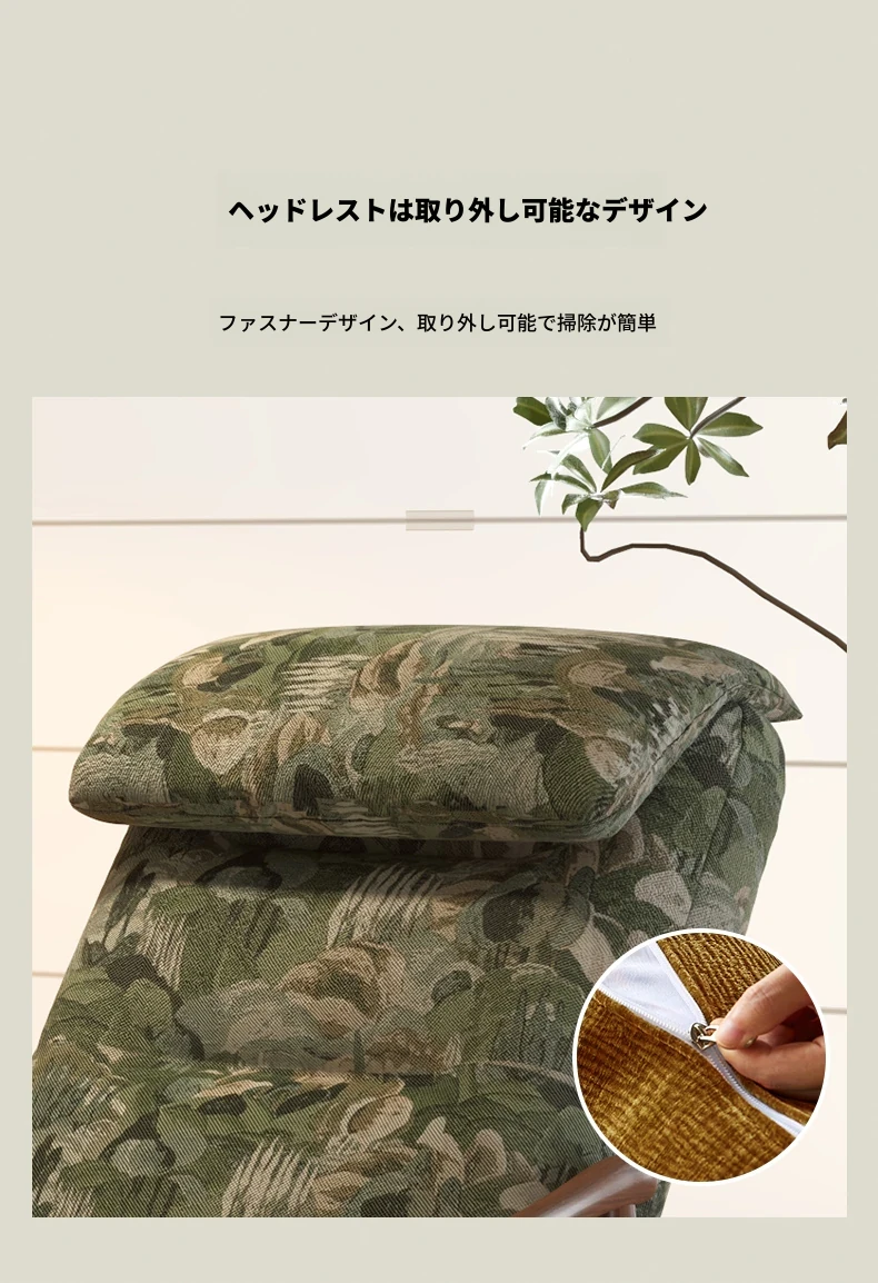 【輸入北米ホワイトアッシュソファチェア】ミストグリーン提花-コットンリネンアップグレードヘッドレスト取り外し可能