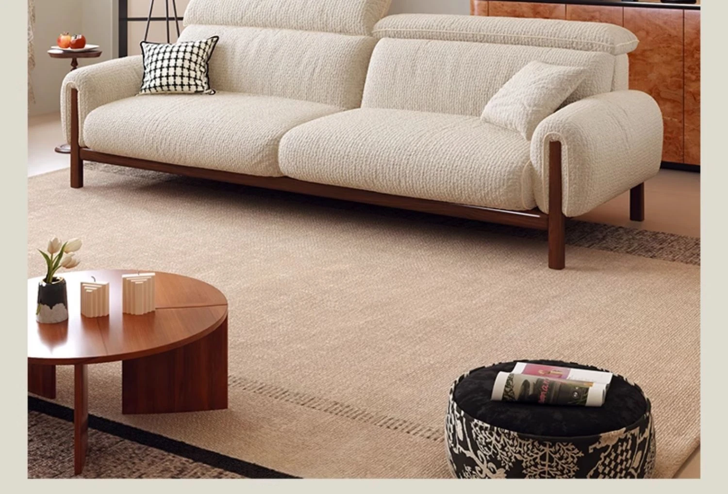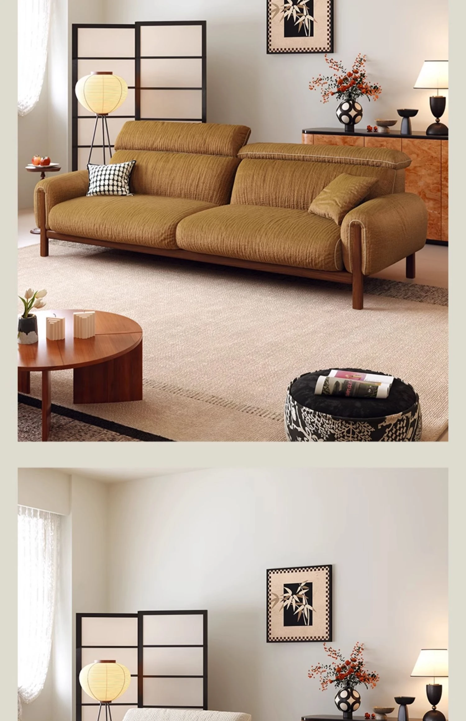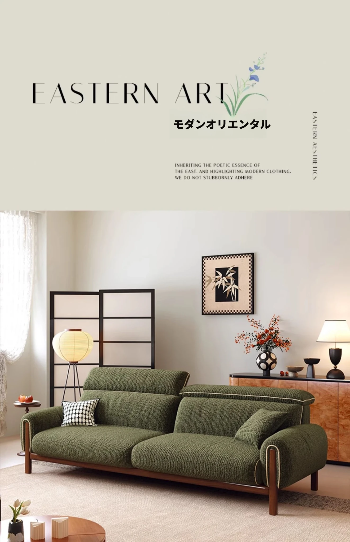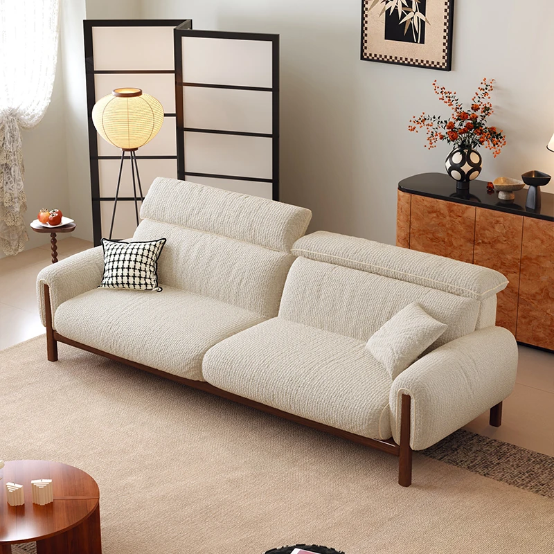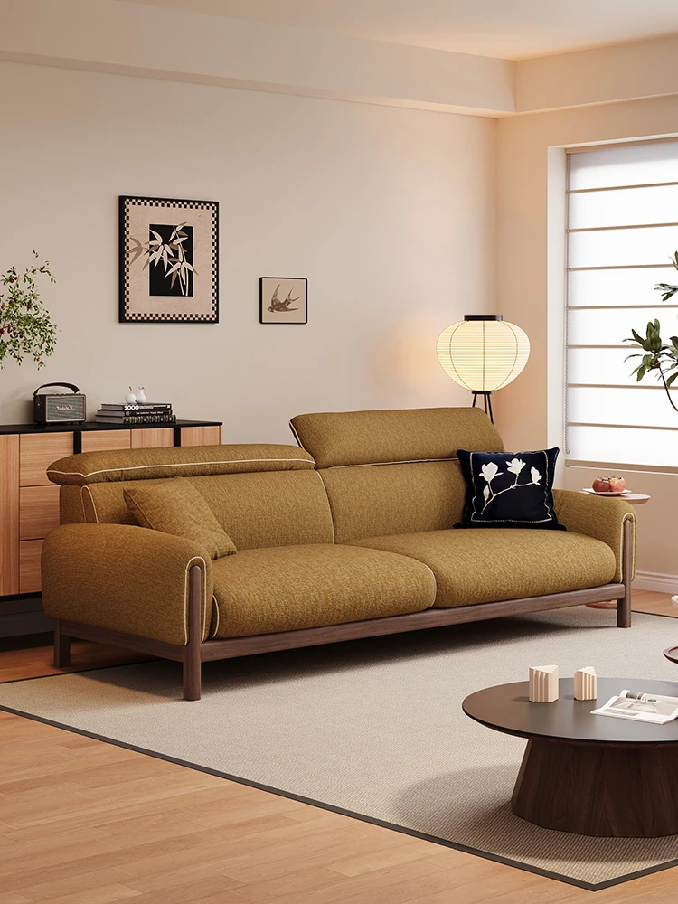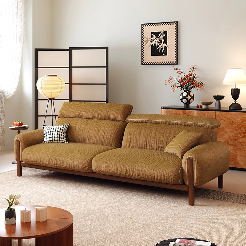 ワーナス・ロスのレトロスタイル、スノーウールファブリック、無垢材使用の小型リビングソファ。2025年新作、直線デザインでグリーンカラー!おしゃれでコンパクトな空間にぴったりです。