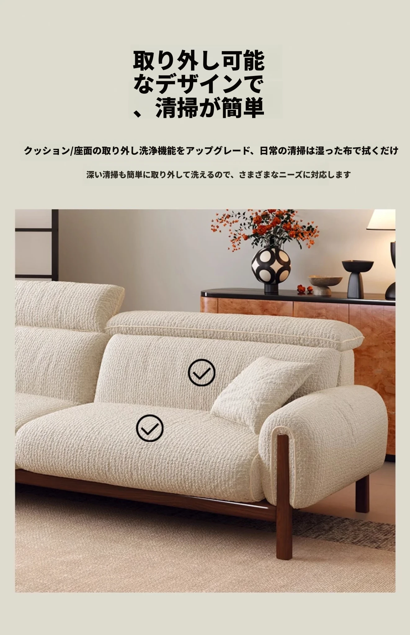 【モネホワイト-防水シェニール】天然ラテックス+47D高反発スポンジタイプ アップグレード可調整ヘッドレスト