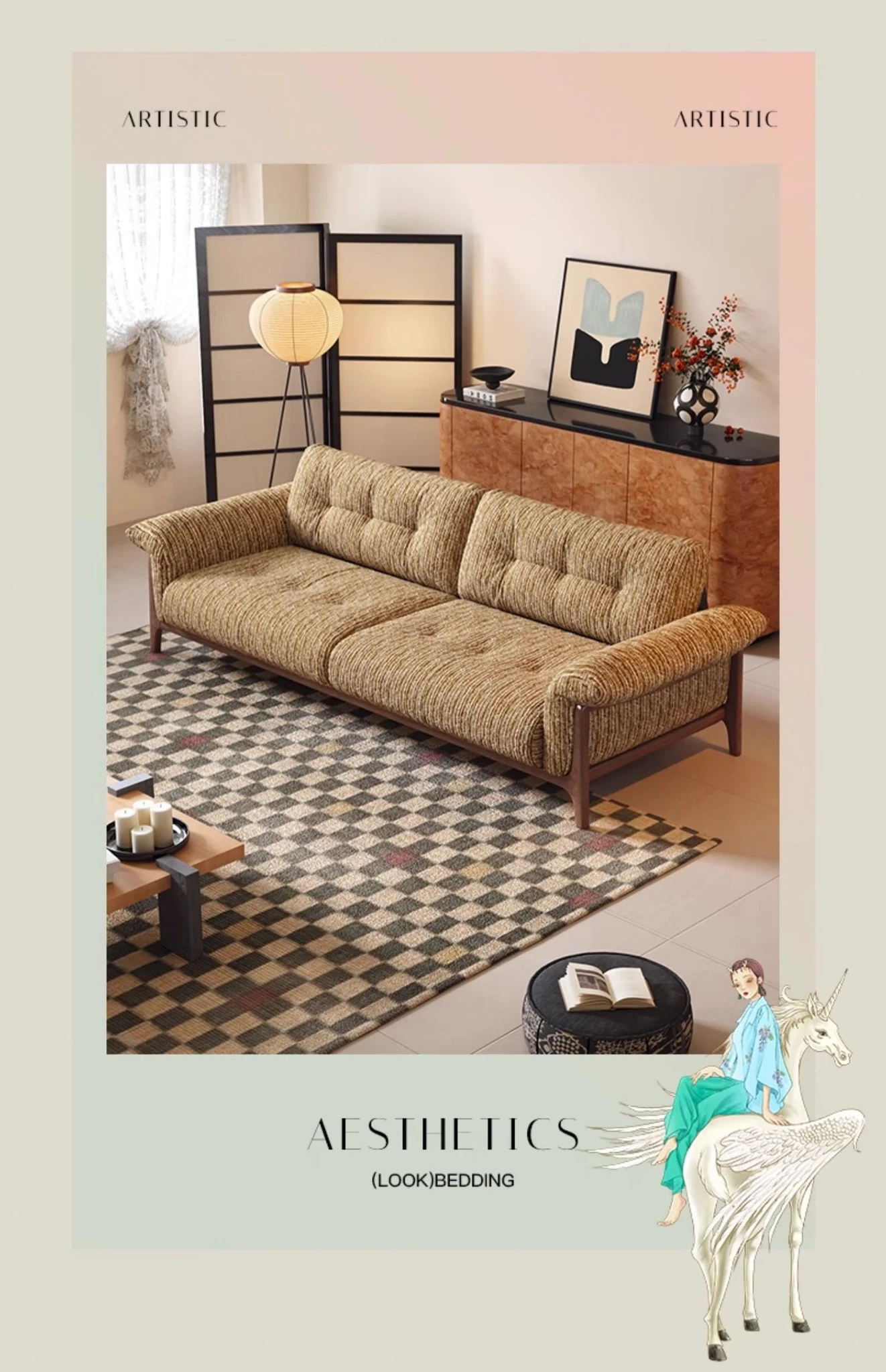 Wanas Vintage Fabric Sofa 2025 - Retro Small Apartment Double Seat for Living Room, Solid Wood Frame, Perfect for Cozy Spaces