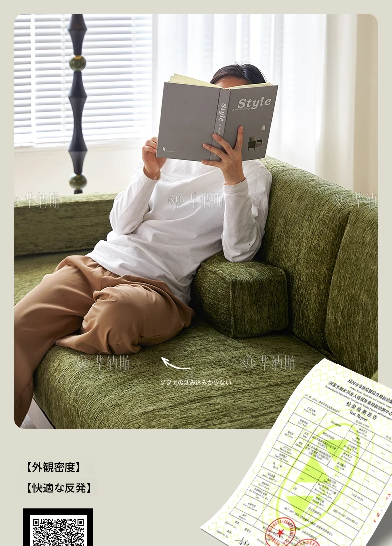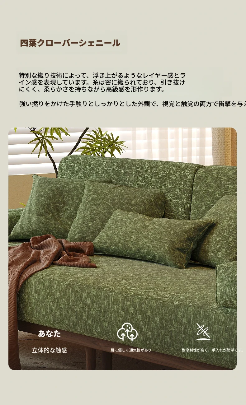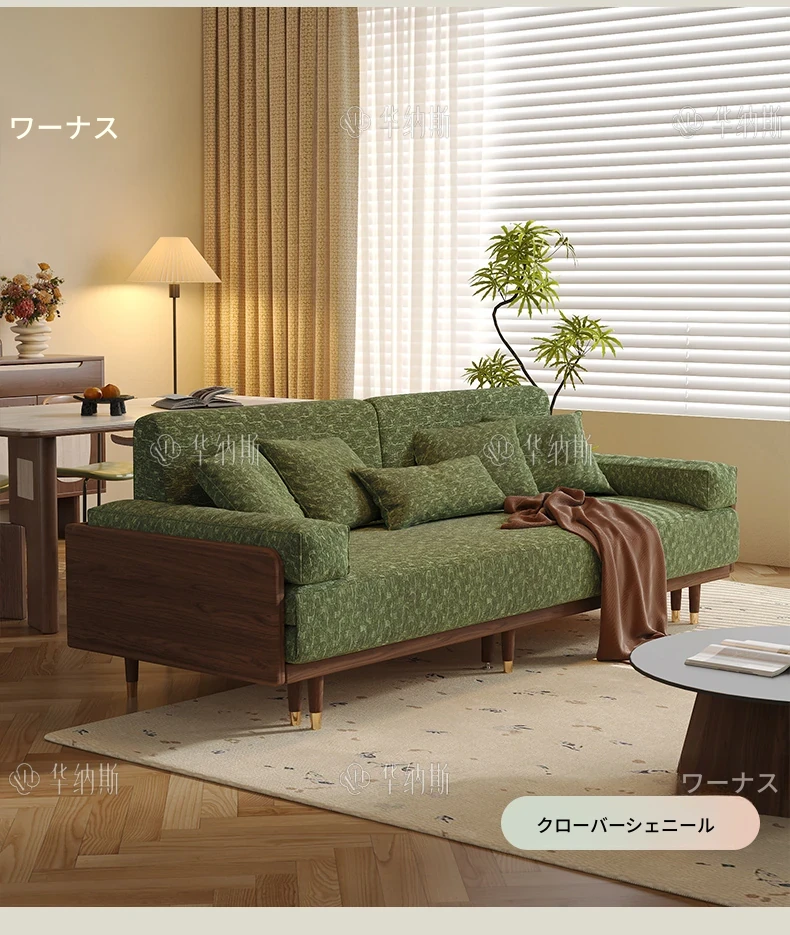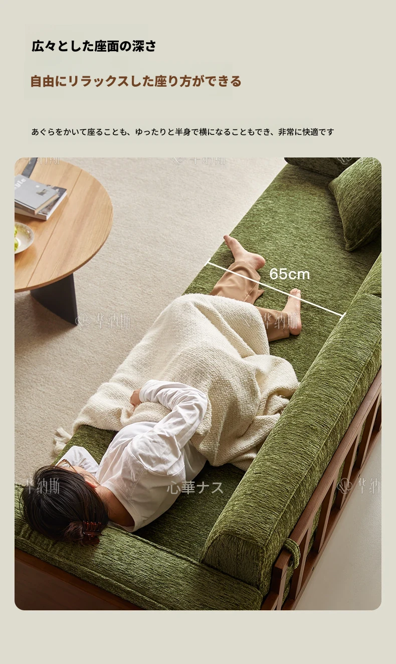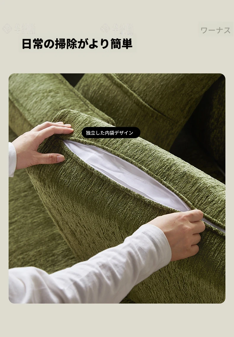 2.07m【抹茶グリーン・シェニール+バイオレット・スポンジ+全白ワックスウッド/ウォールナット色フレーム】