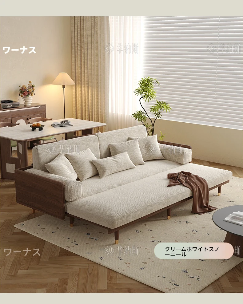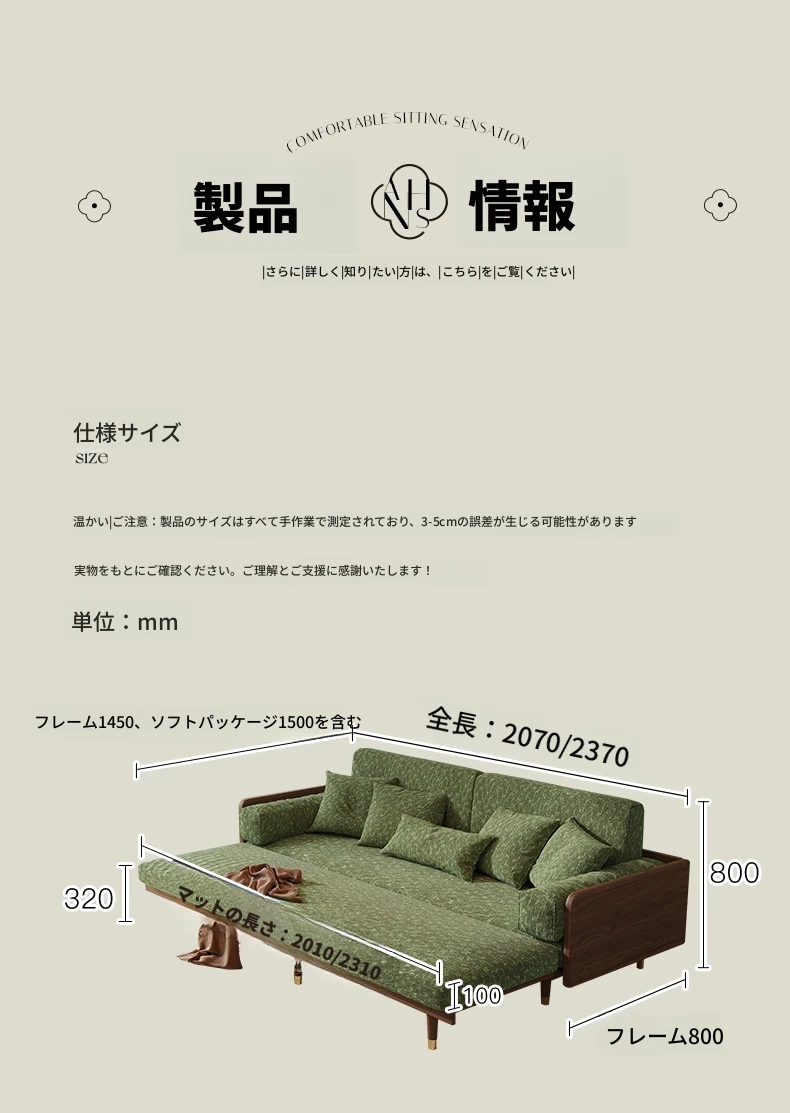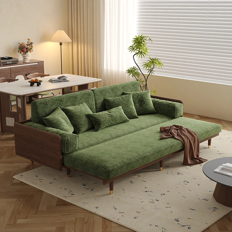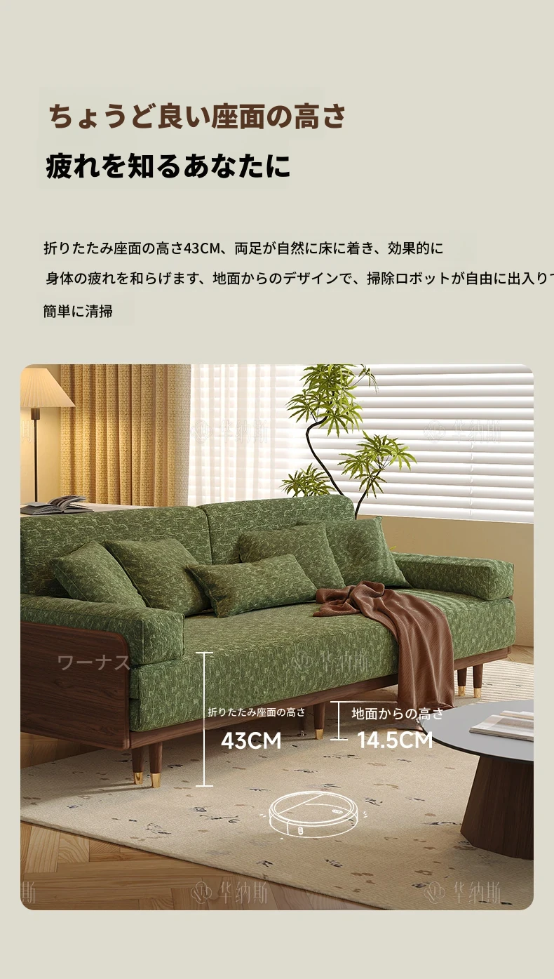 ワーナスの伸縮式ソファベッド - 新型2025年、実木製で折りたたみ可能!小さなリビングにもぴったりのグリーンカラーで、長期的な快適な睡眠をサポートします。おしゃれで機能的な空間を実現しましょう!