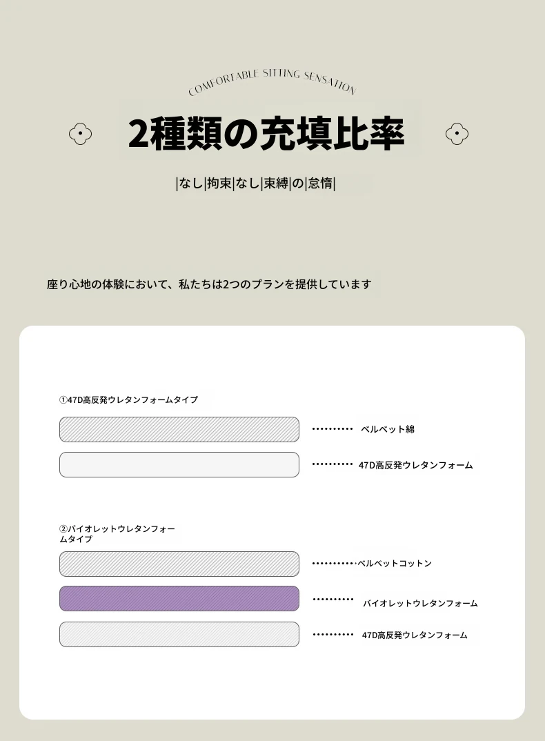 2.07m【クローバー・シェニール+バイオレット・スポンジ+全白ワックスウッド/ウォールナット色フレーム】