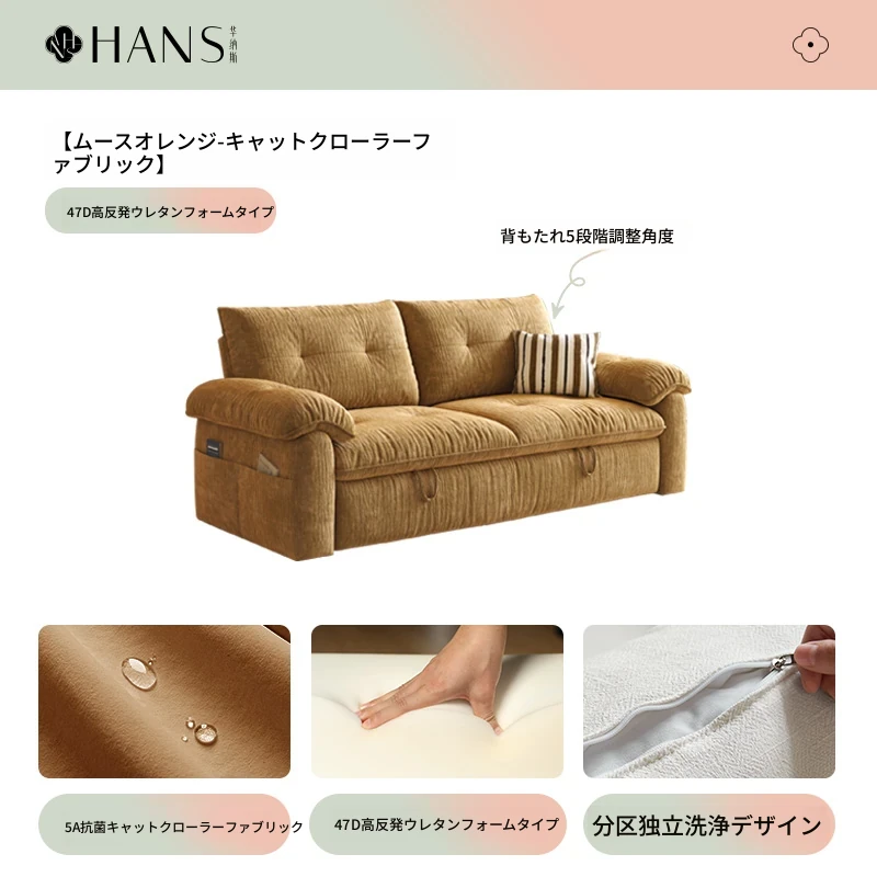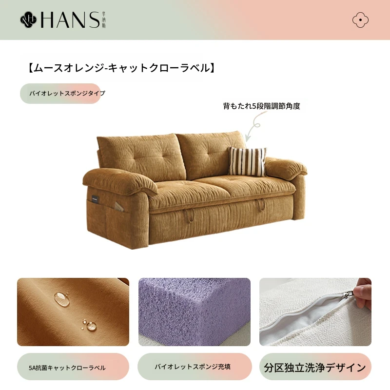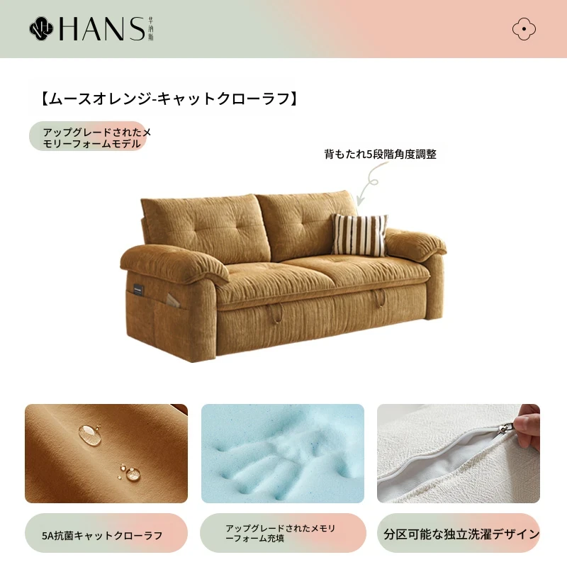 フラッグシップ版【ムースオレンジ-キャットクロー生地】アップグレードメモリーフォーム (ソファベッド、全分解洗浄設計)