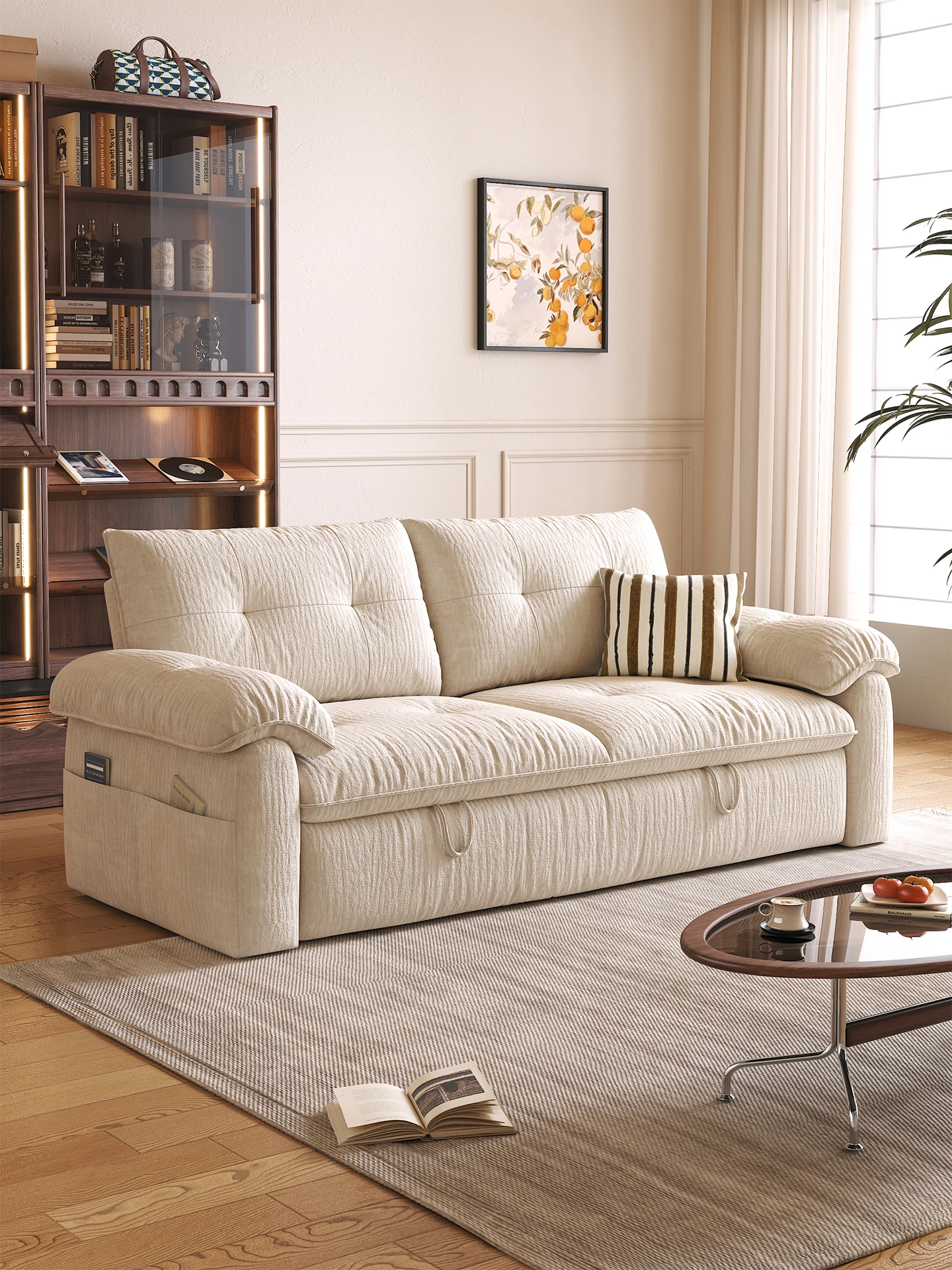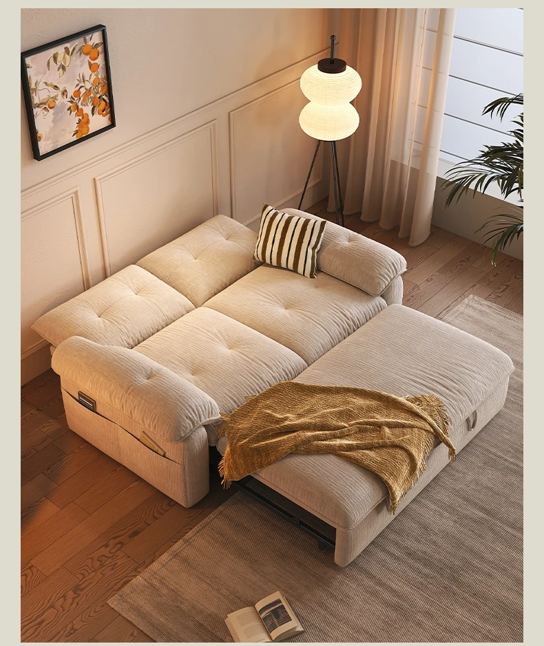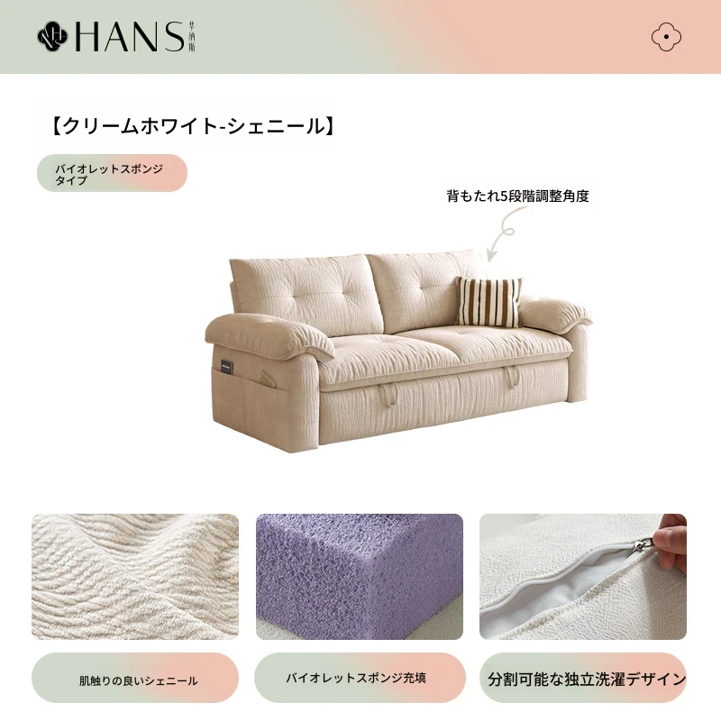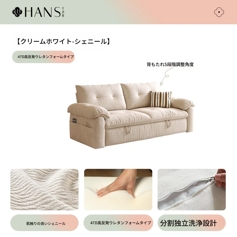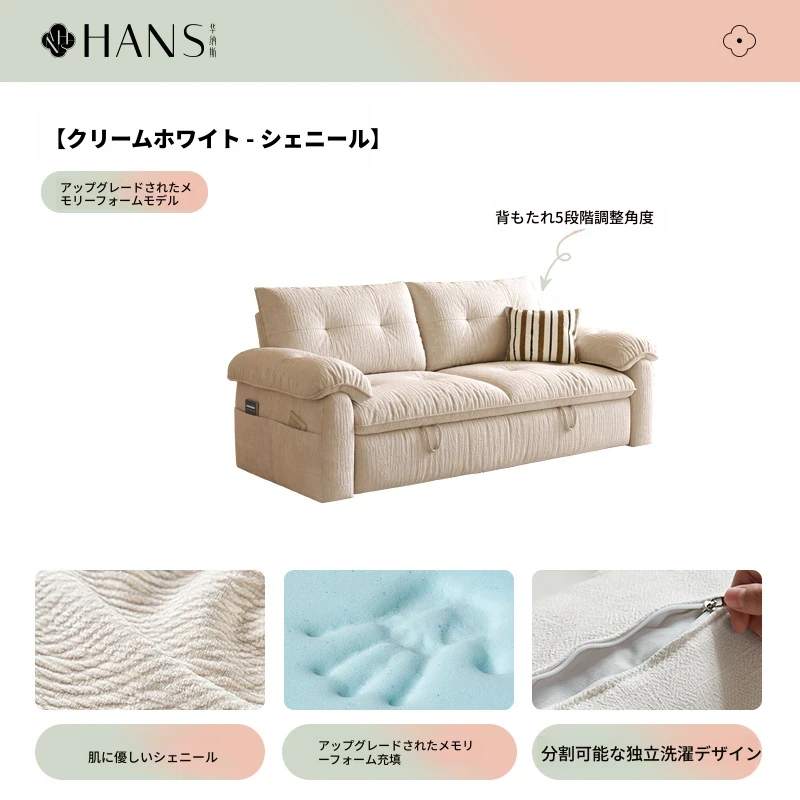 フラッグシップ版【クリームホワイト-シェニール】アップグレードメモリーフォーム (ソファベッド、全分解洗浄設計)
