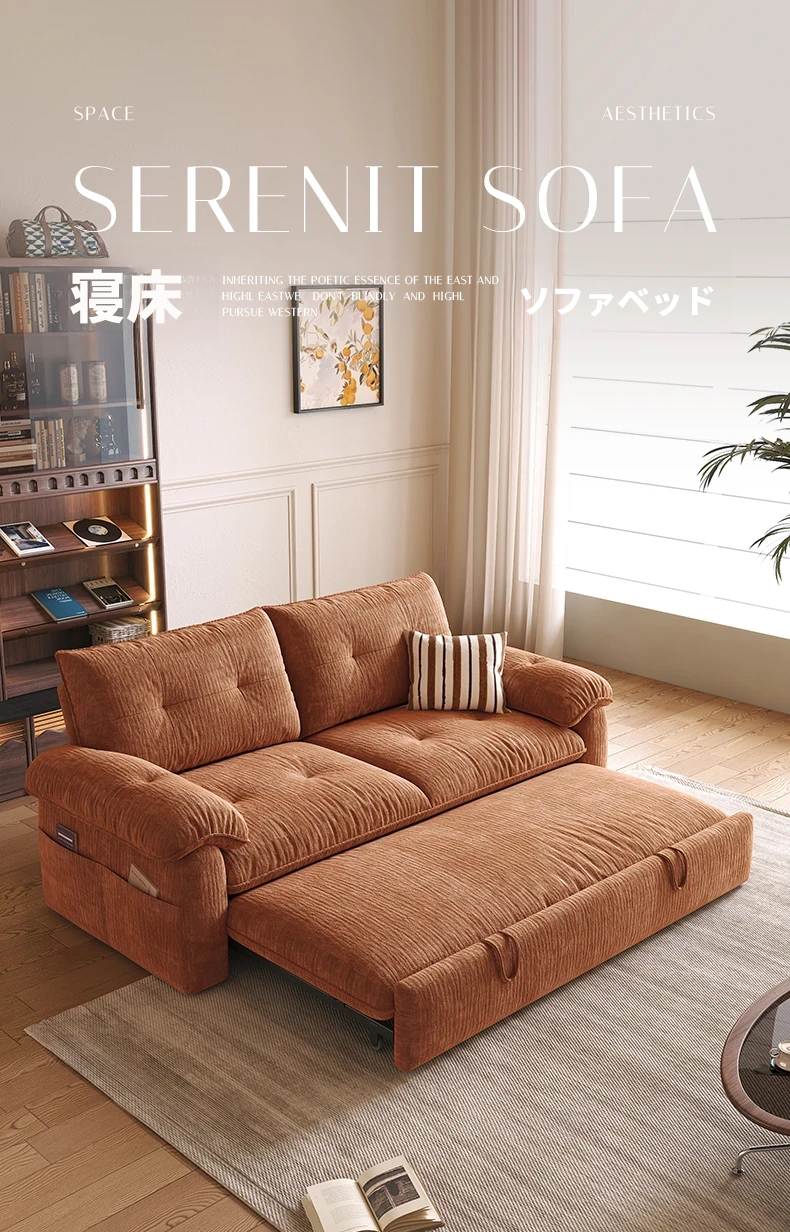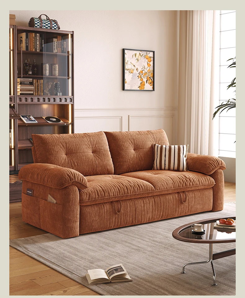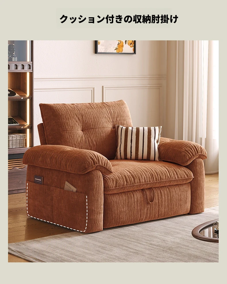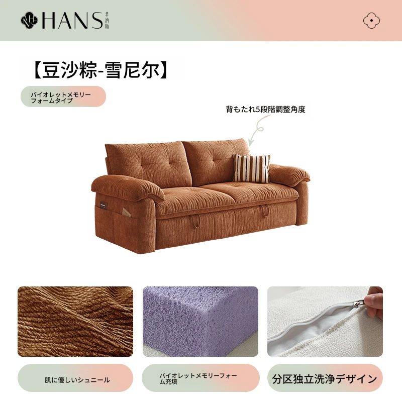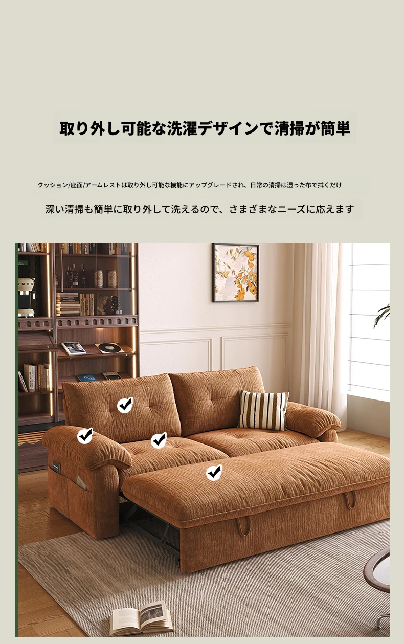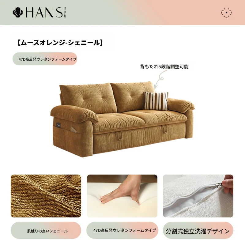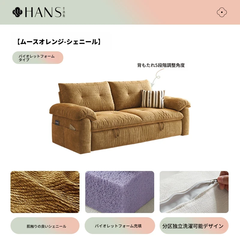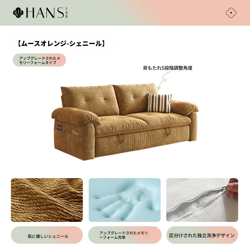 フラッグシップ版【ムースオレンジ-シェニール】アップグレードメモリーフォーム (ソファベッド、全分解洗浄設計)