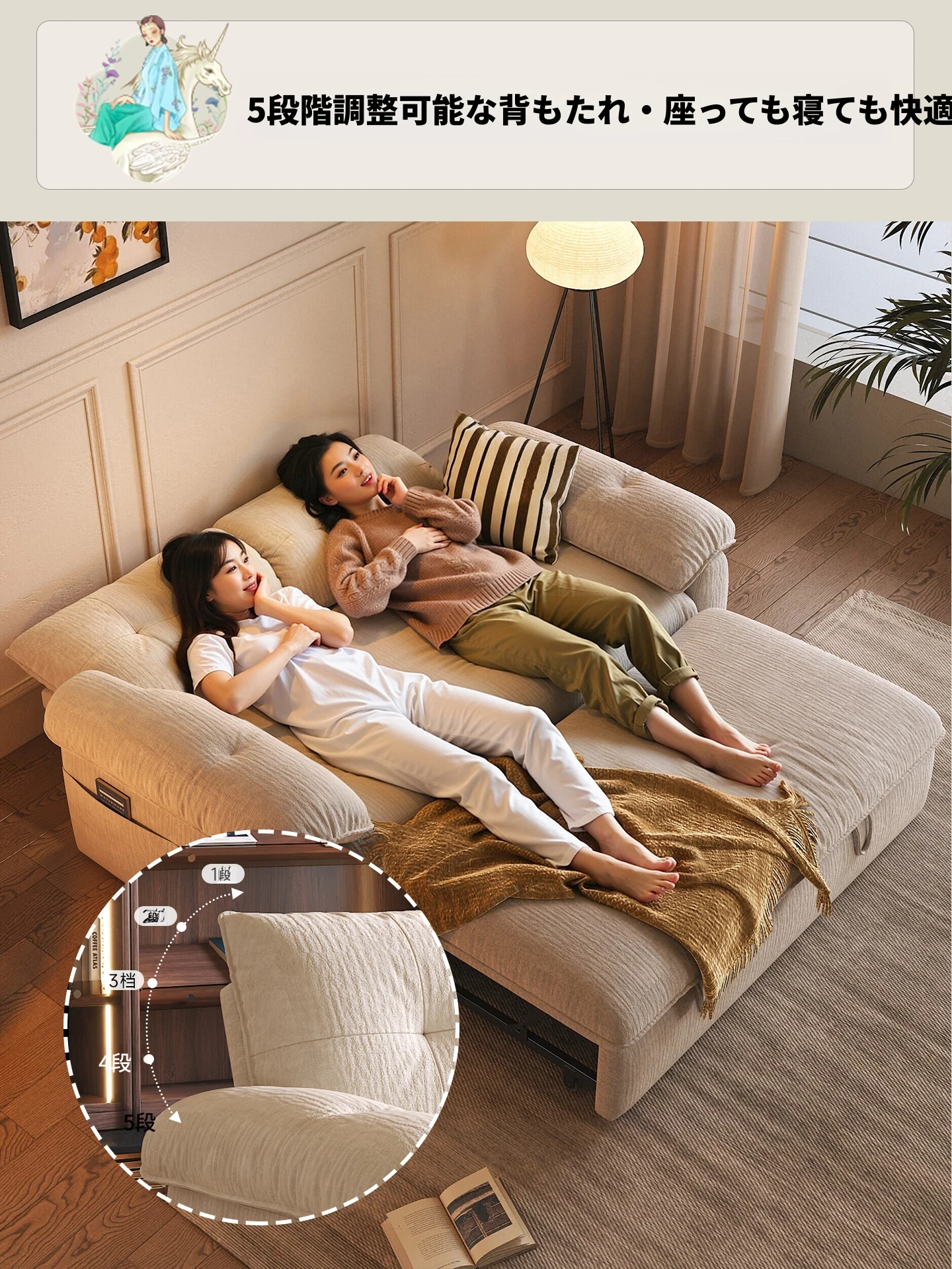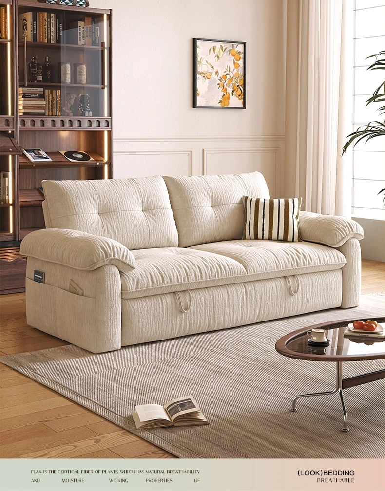 ワーナスのクリーム風ソファベッド、折りたたみ式で2WAY使用可能!洗濯可能なカバー付き、リビングにぴったりの伸縮式ダブル布製ソファ。快適さとスタイルを兼ね備えた一品!