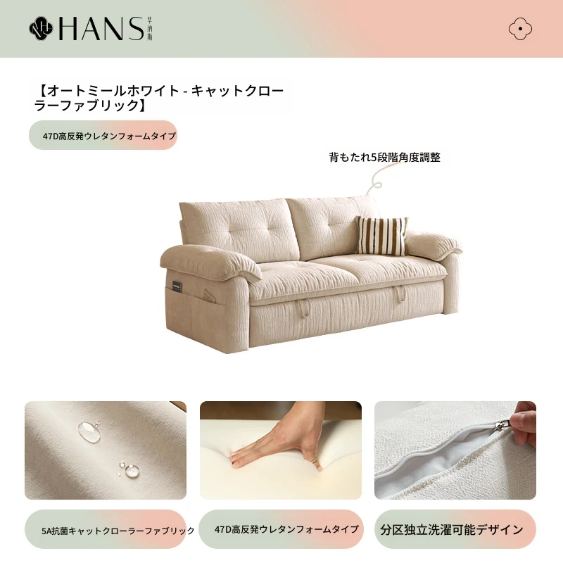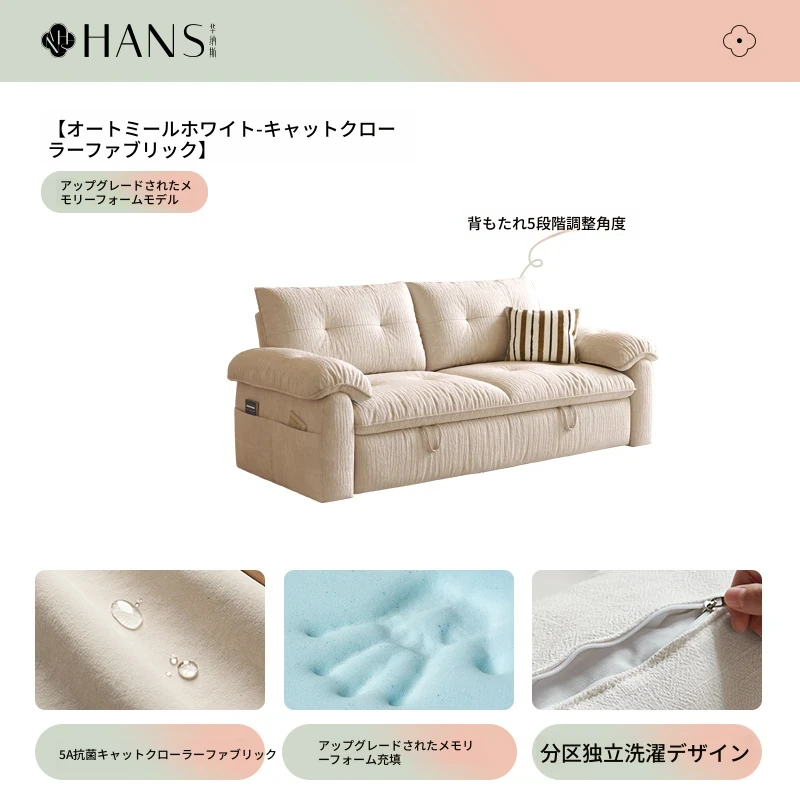 フラッグシップ版【オートミールホワイト-キャットクロー生地】アップグレードメモリーフォーム (ソファベッド、全分解洗浄設計)