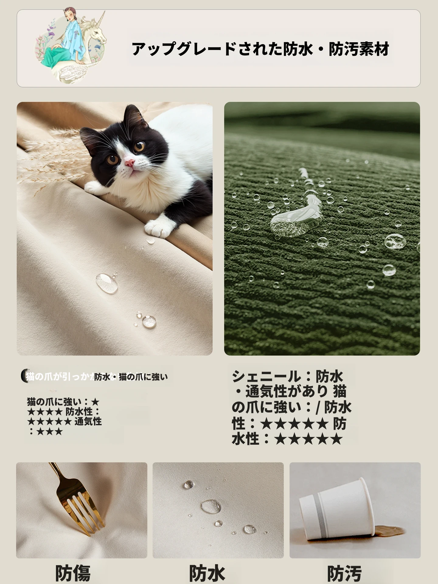 快適版【オートミールホワイト-キャットクロー生地】47D高反発スポンジタイプ (ソファベッド、全分解洗浄設計)