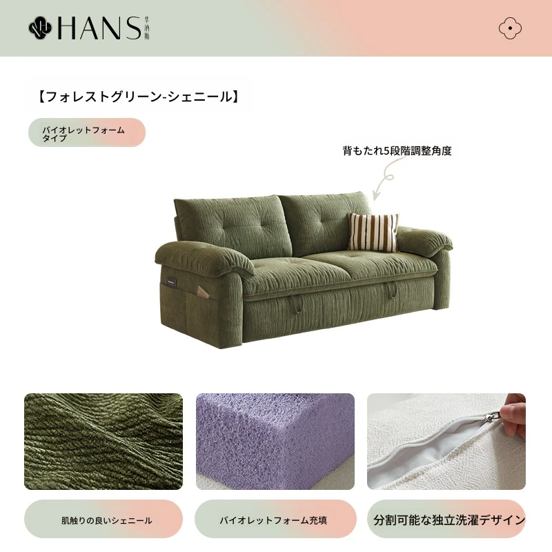 フラッグシップ版【フォレストグリーン-シェニール】アップグレードメモリーフォーム (ソファベッド、全分解洗浄設計)