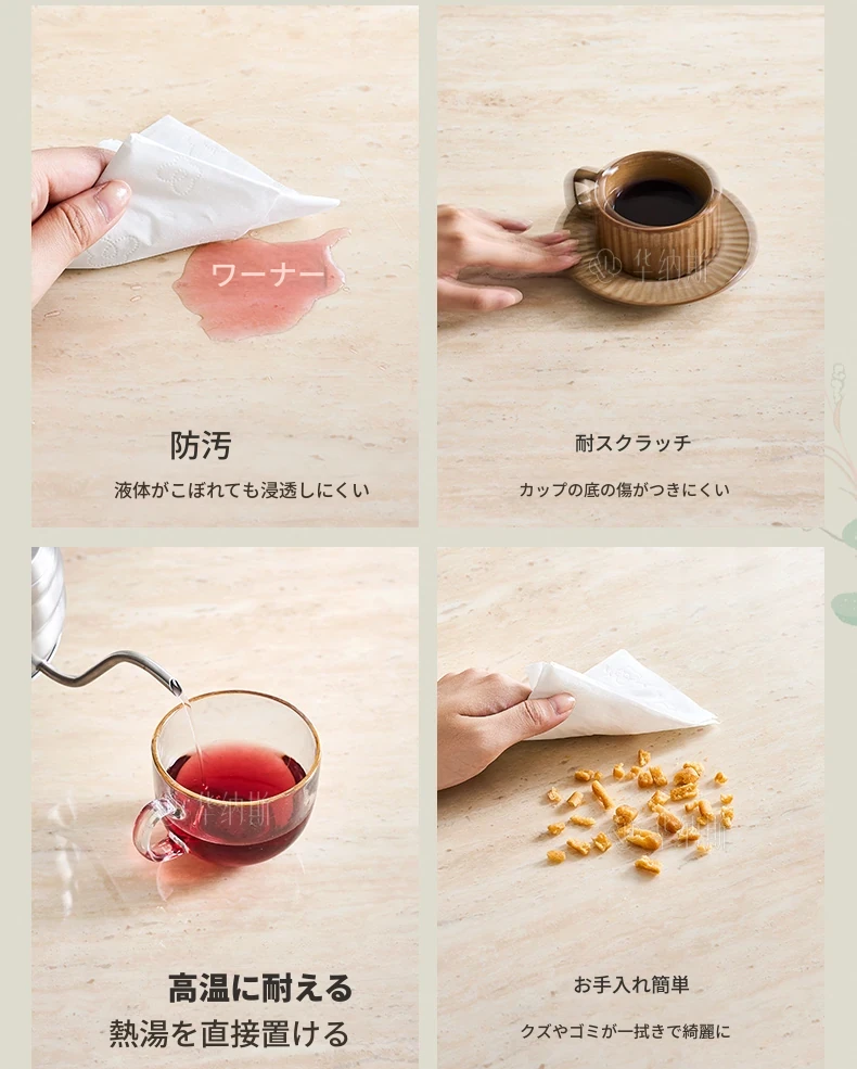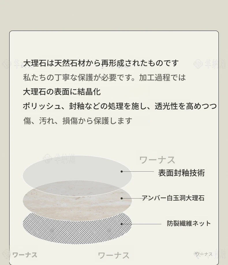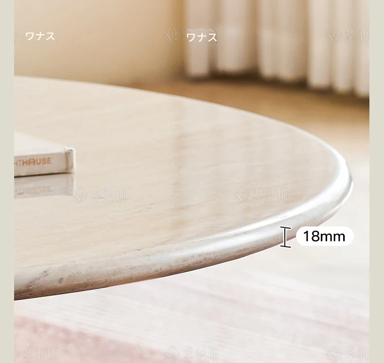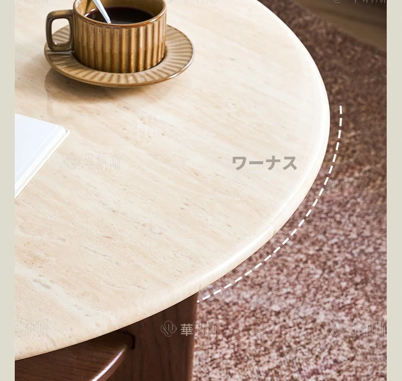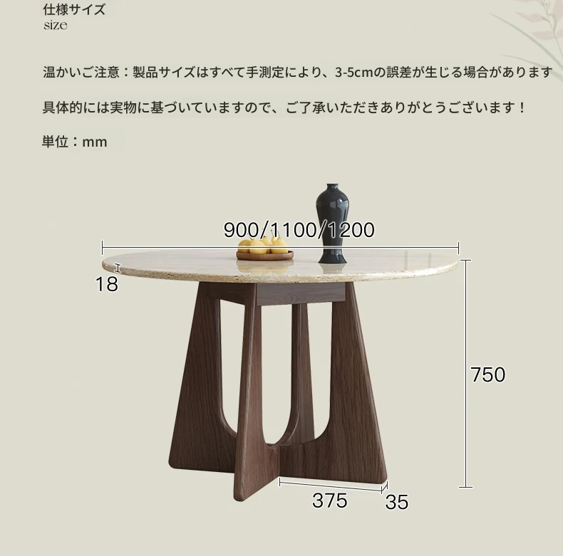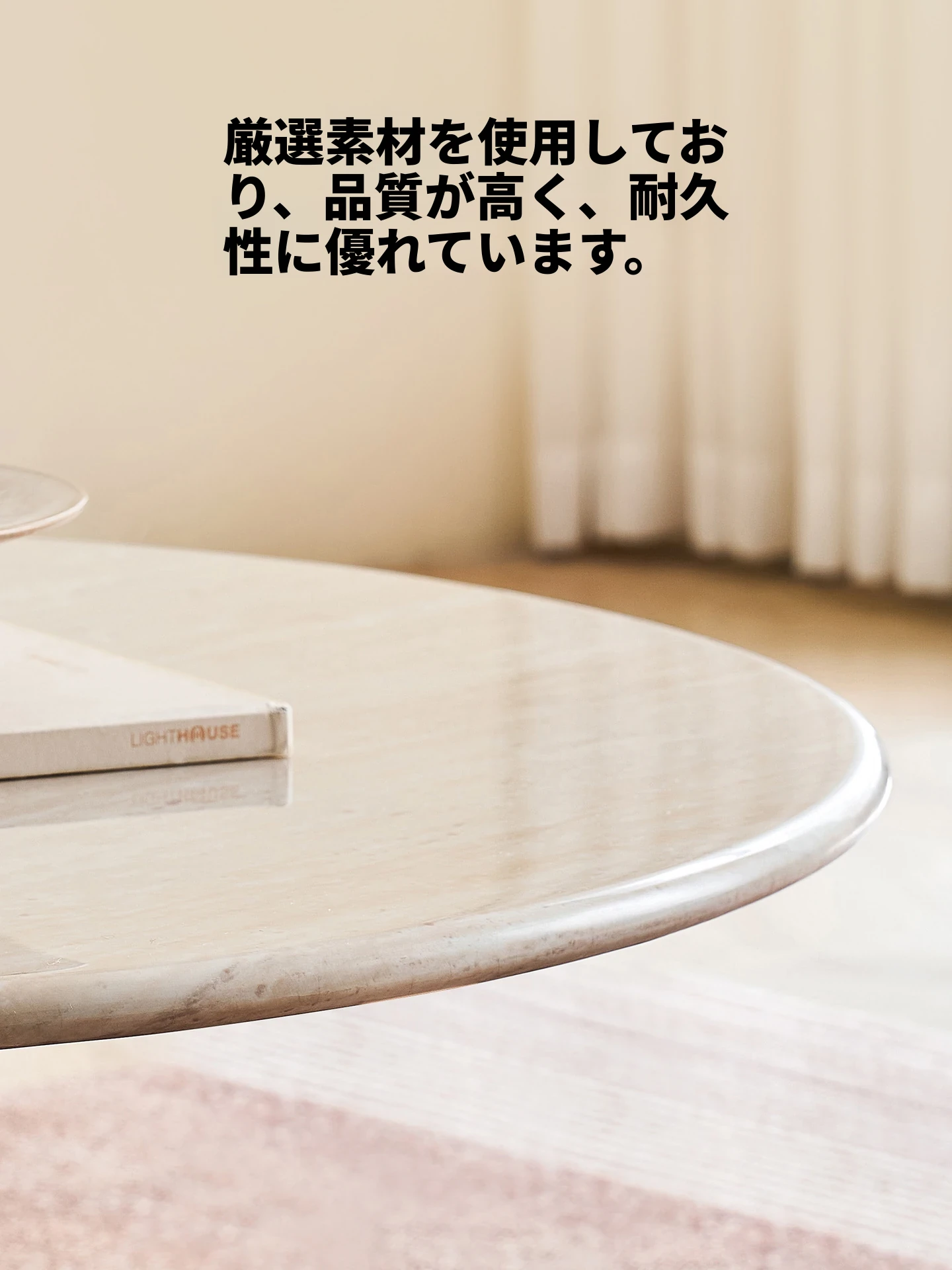 0.9メートル白樺木ダイニングテーブル【洞石模様-大理石/光沢】