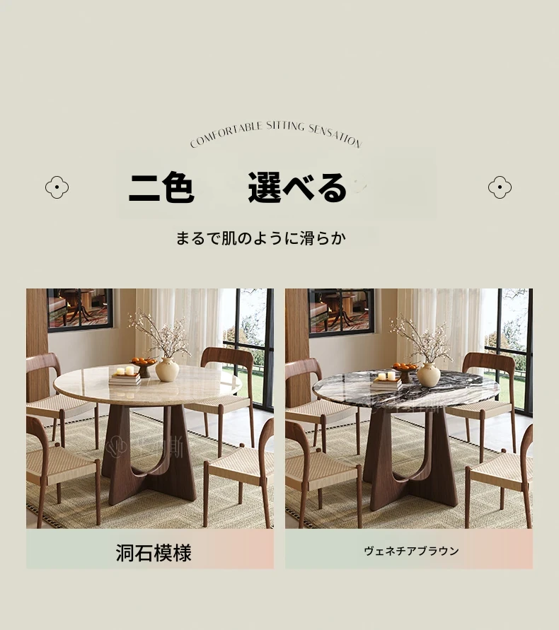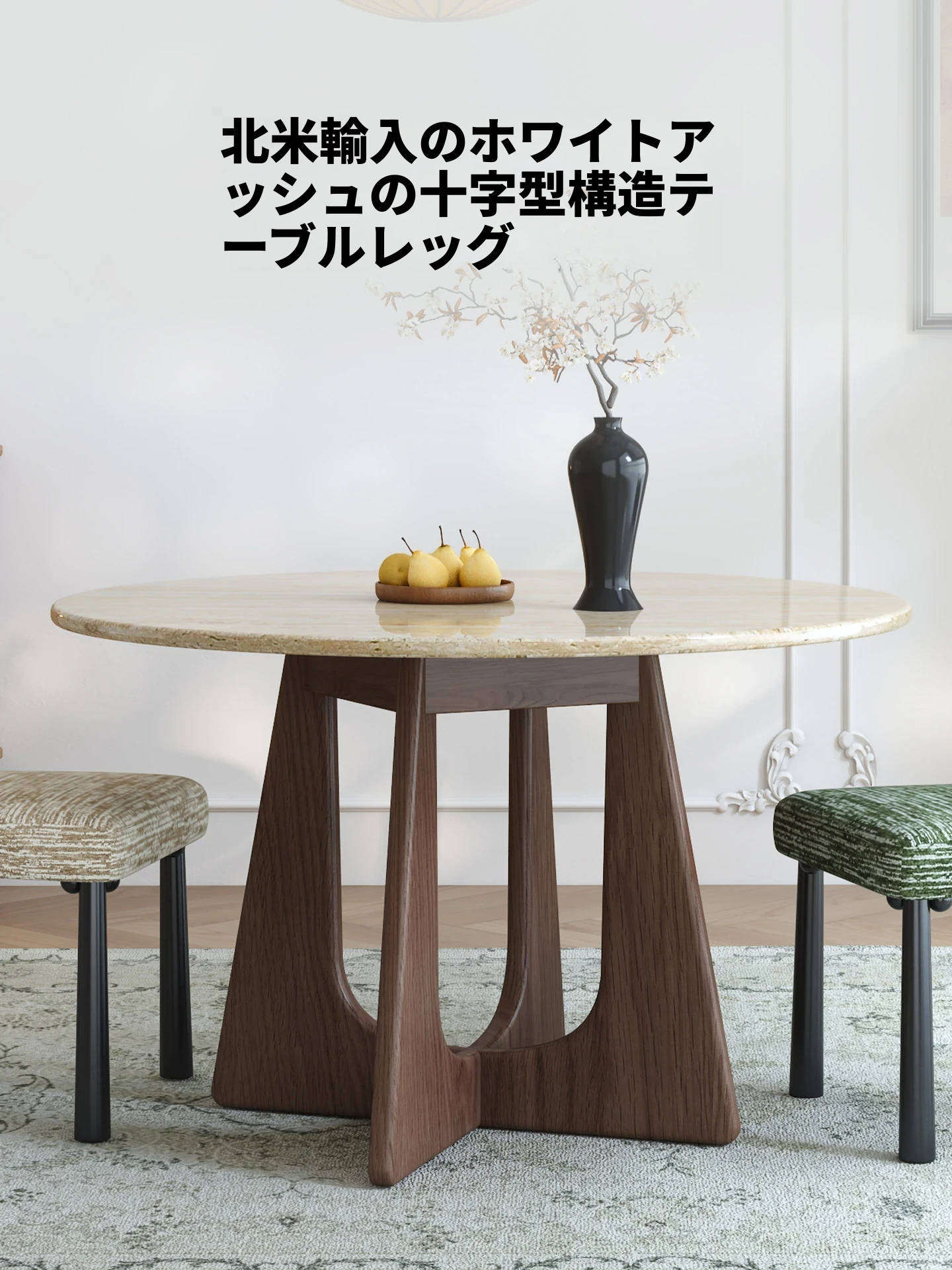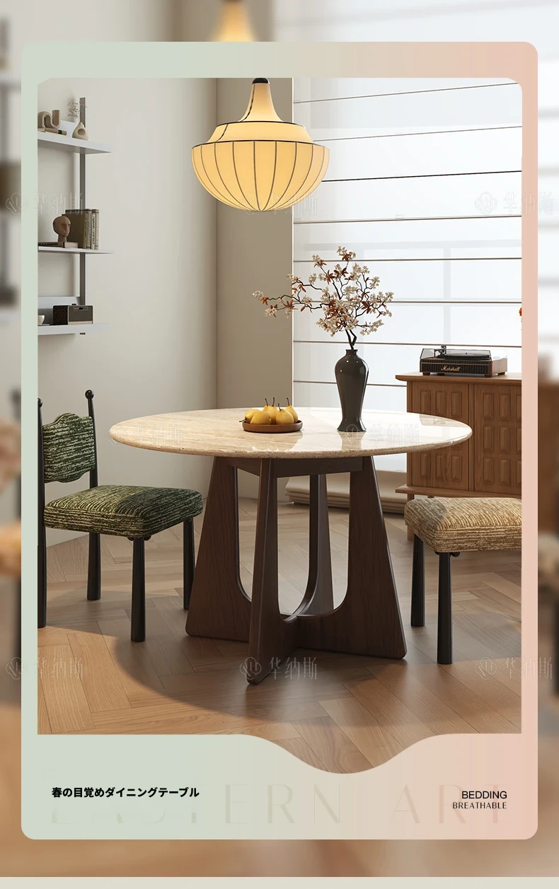 ワーナス春晓の中古風ダイニングテーブル2025年新作!小型リビングにぴったりな大理石天板の丸型食卓。おしゃれで機能的、家族や友人との素敵な食事時間を演出します!