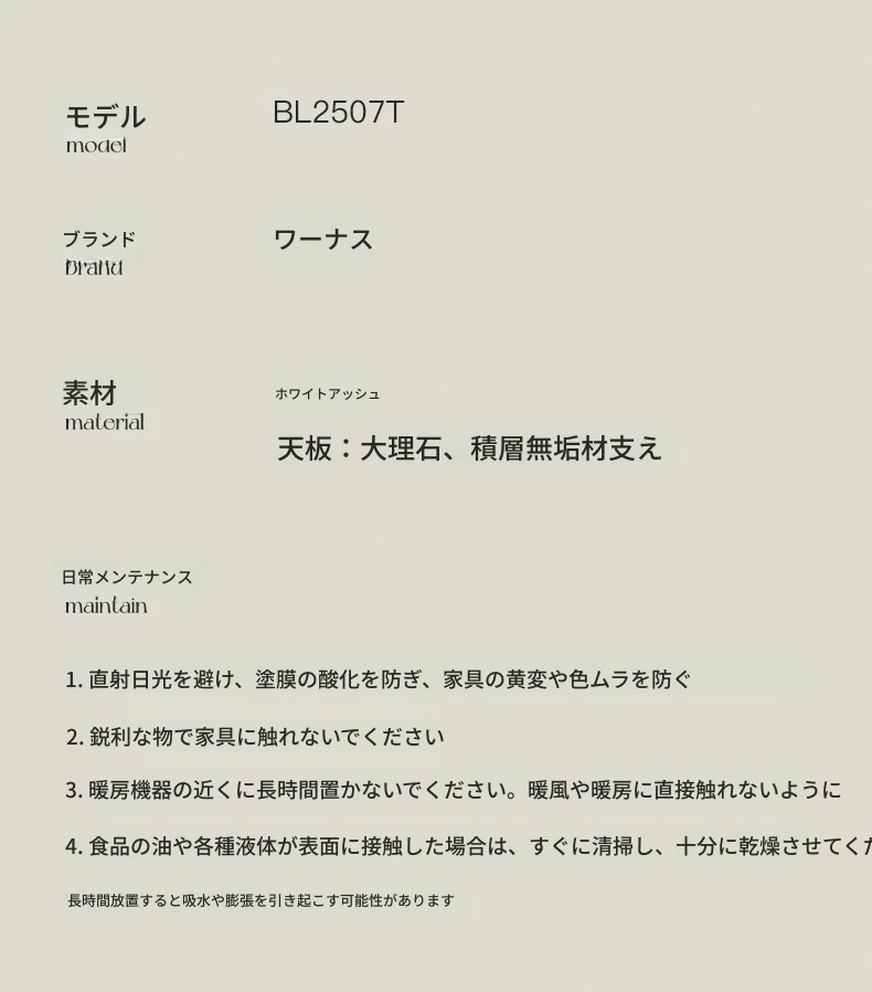 【黄洞石模様岩板/マット】1.1メートル白樺木ダイニングテーブル(納期40日)