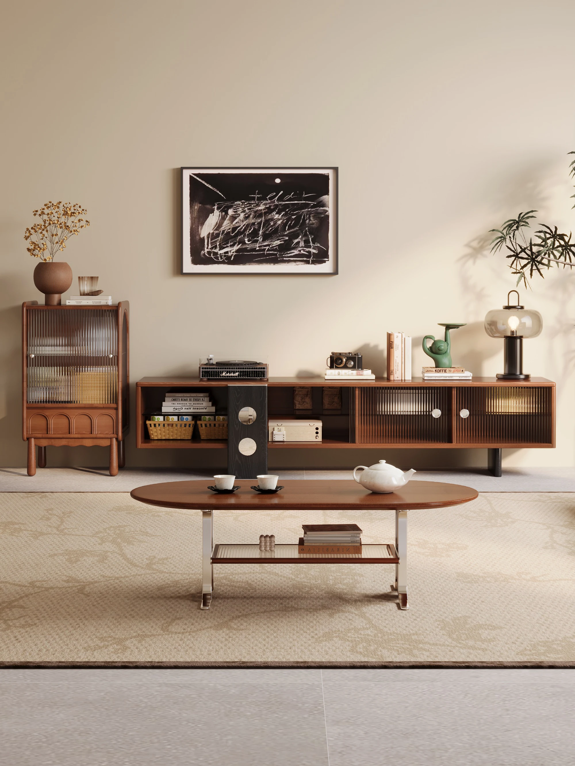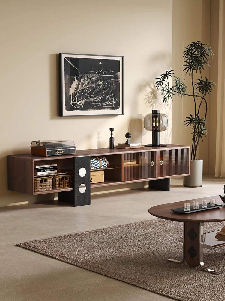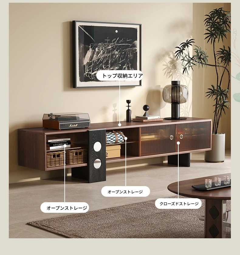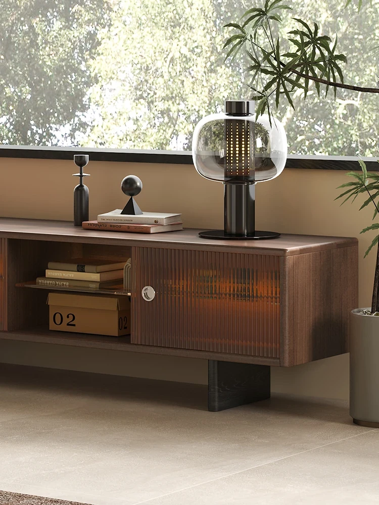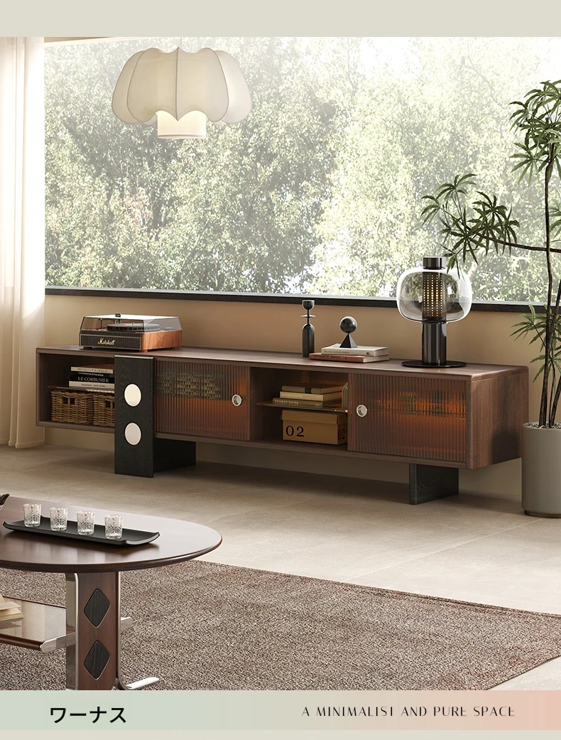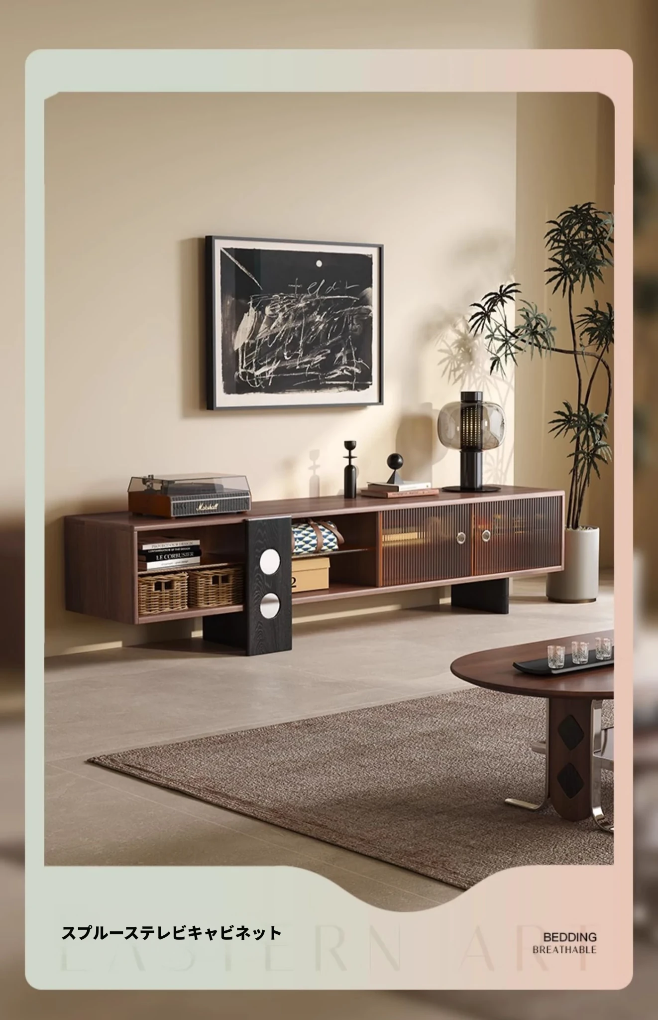 ワーナス スプルース テレビキャビネット 小型リビング用 家庭用 本物の木製 ガラス収納 地下キャビネット 新しい中式スタイル 2025年新作!おしゃれで機能的なデザインで、お部屋をスッキリ整頓。