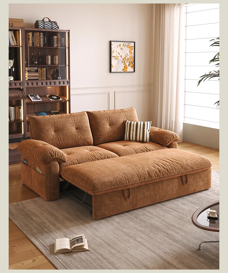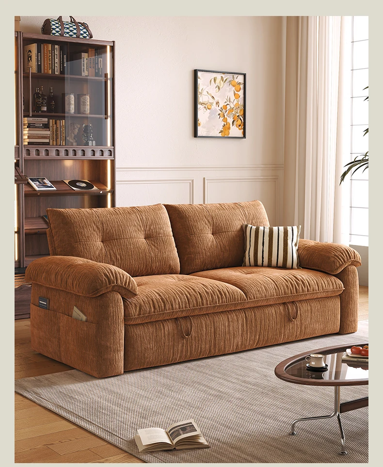 フラッグシップ版【ムースオレンジ-シェニール】アップグレードメモリーフォーム (ソファベッド、全分解洗濯可能デザイン)