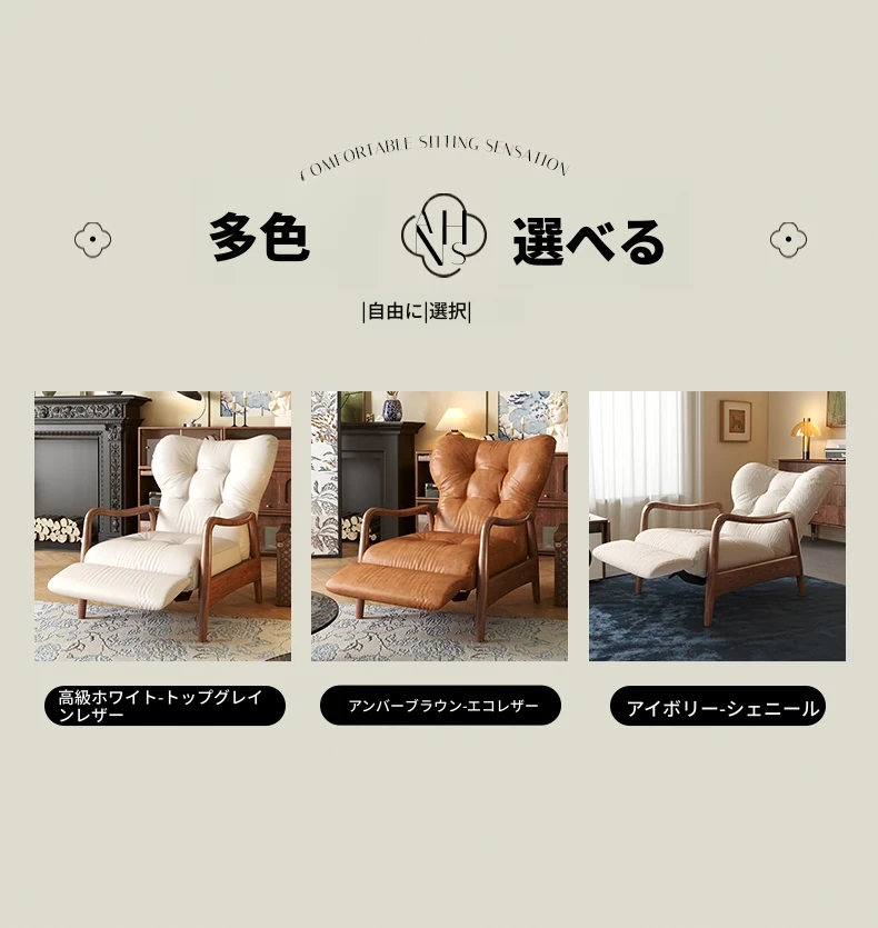 ワーナスの2025年新作、デザイナーによる本革の多機能リクライニングラウンジチェア。スタイリッシュなミッドセンチュリー風シングルソファで、快適さと機能性を兼ね備えた一品です。あなたのリビングにぴったりの贅沢な選択肢!