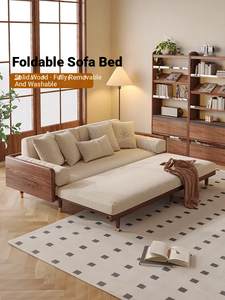 Warnas Cloud Sofa Bed - 2025 New Model, Solid Wood Foldable 2-in-1 Design, Perfect for Small Spaces, Cotton Linen Fabric, Walnut Color. Ideal for Cozy Living Rooms!