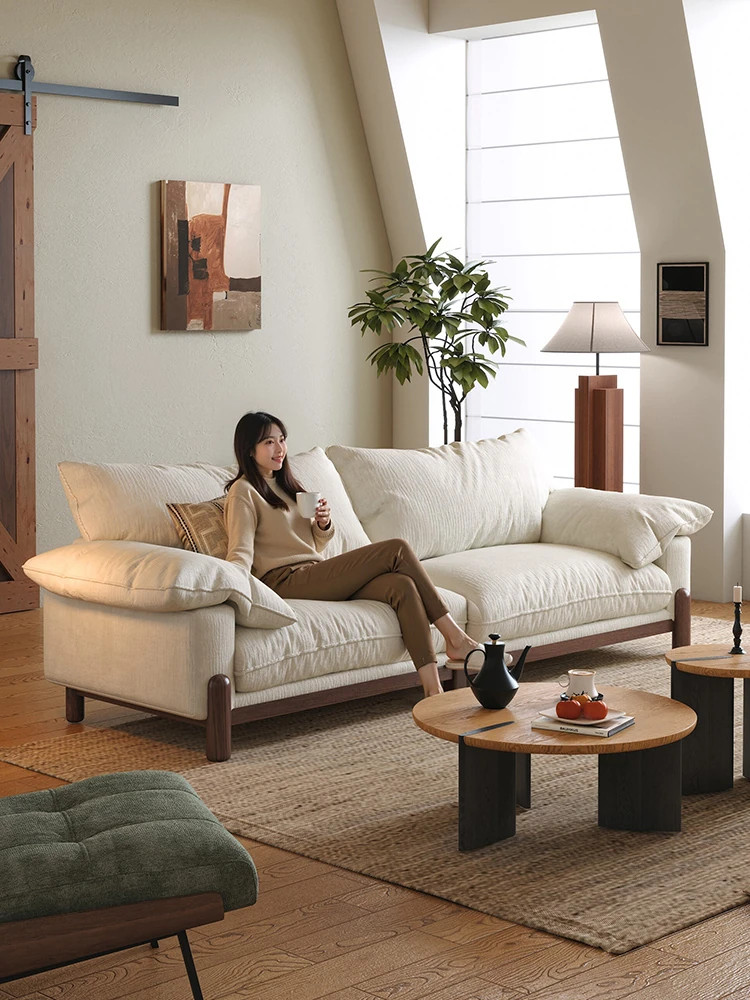 Wanas Cloud-Style Retro Sofa 2025 New Model – Solid Wood, Cotton-Linen, Removable and Washable, Perfect for Small Living Rooms with Vintage Charm