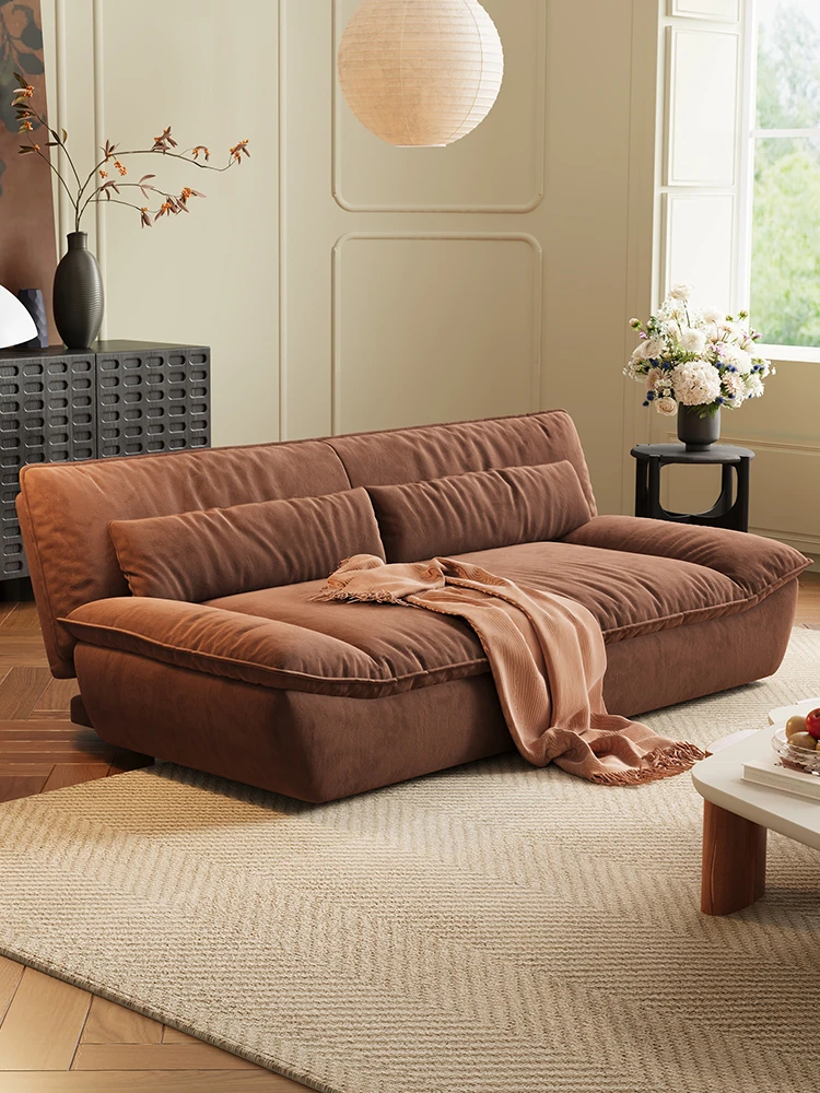 ワーナス望舒リアルウッドソファー - 本革仕上げ、2025年新作!小型住宅にぴったりのレトロなウォールナットカラー、ストレートデザインでスタイリッシュなリビング空間を演出します。