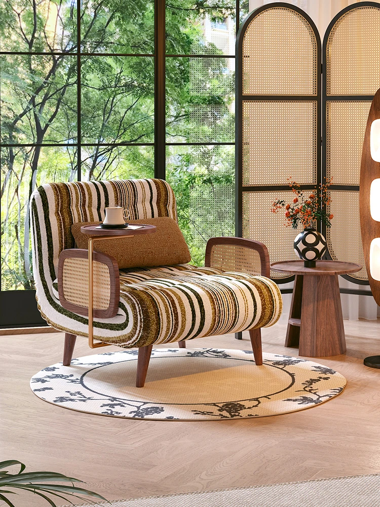 ワーナス・モーニングソファ ストライプコットンリネン 2025年新作 レトロシンプル 小型住宅向け 大きな耳のデザイン 天然木製 おしゃれで快適なリビング空間を演出!