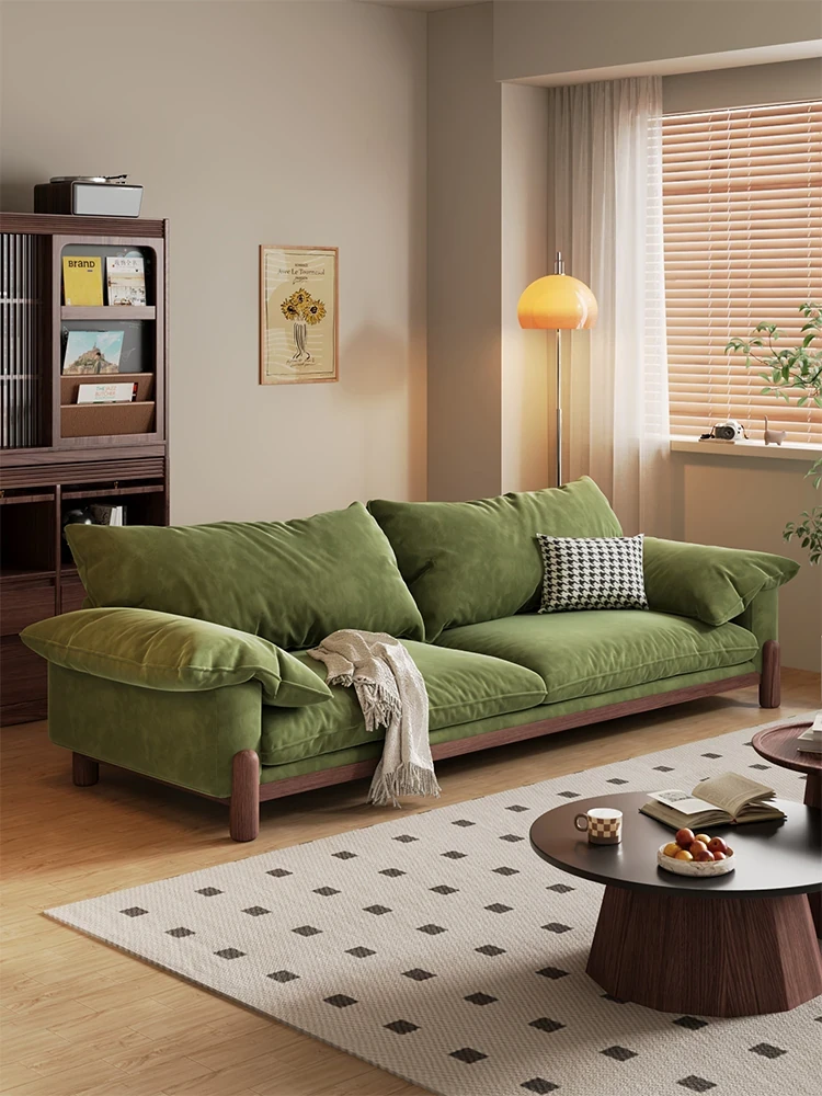 ワーナス 朝夕収納ソファ 無垢材 リビング用 2025年新作 小型住宅向け ヴィンテージ風 カウチソファ グリーンファブリックでおしゃれな空間を演出!快適さとスタイルを両立した一品です。