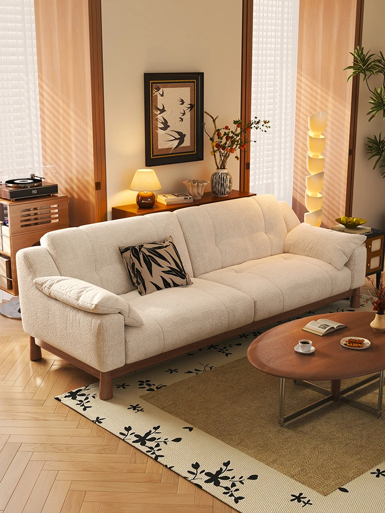ワーナス朝夕ソファー - 侘び寂び風のコットンリネン生地、無垢材使用の小型リビング向け。2025年新作、レトロなストレートデザインで、心地よいくつろぎの空間を演出します!