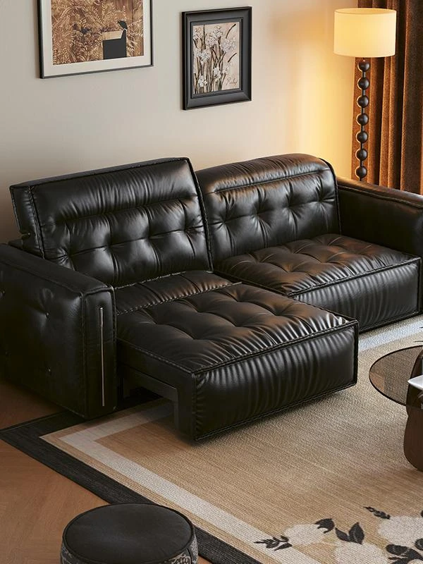 ワナス年糕ソファー ブラック 本革トップグレード牛革 リビング 小型住宅レトロスタイル 雲朵豆腐ブロック 天然木製 コンパクトでスタイリッシュなデザイン、心地よい座り心地を実現!